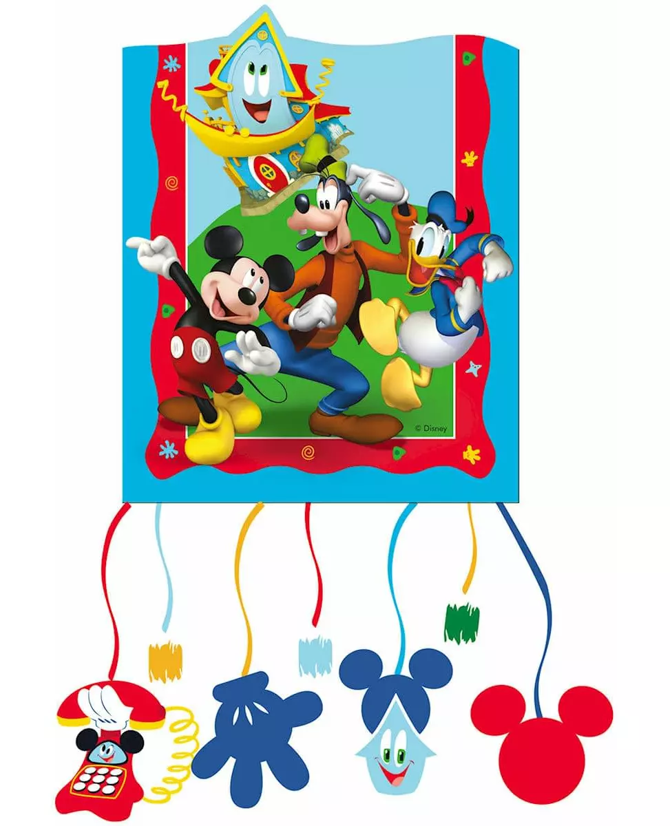 Velkommen til Mickeys hus! Denne piñataen er offisielt lisensiert av Mikke Mus™ og måler 30 x 20 cm. Den er laget av papp med bilder av Mikke Mus, Donald og Langbein. Den har totalt 7 snorer du kan trekke i for å åpne den. Hvis du trekker i riktig snor, åpnes piñataen, og på denne måten kan du slippe ut godbitene du la i før. Perfekt for å underholde de små på en Mikke Mus™-temafest! Inkludert tilbehør: 1 piñata