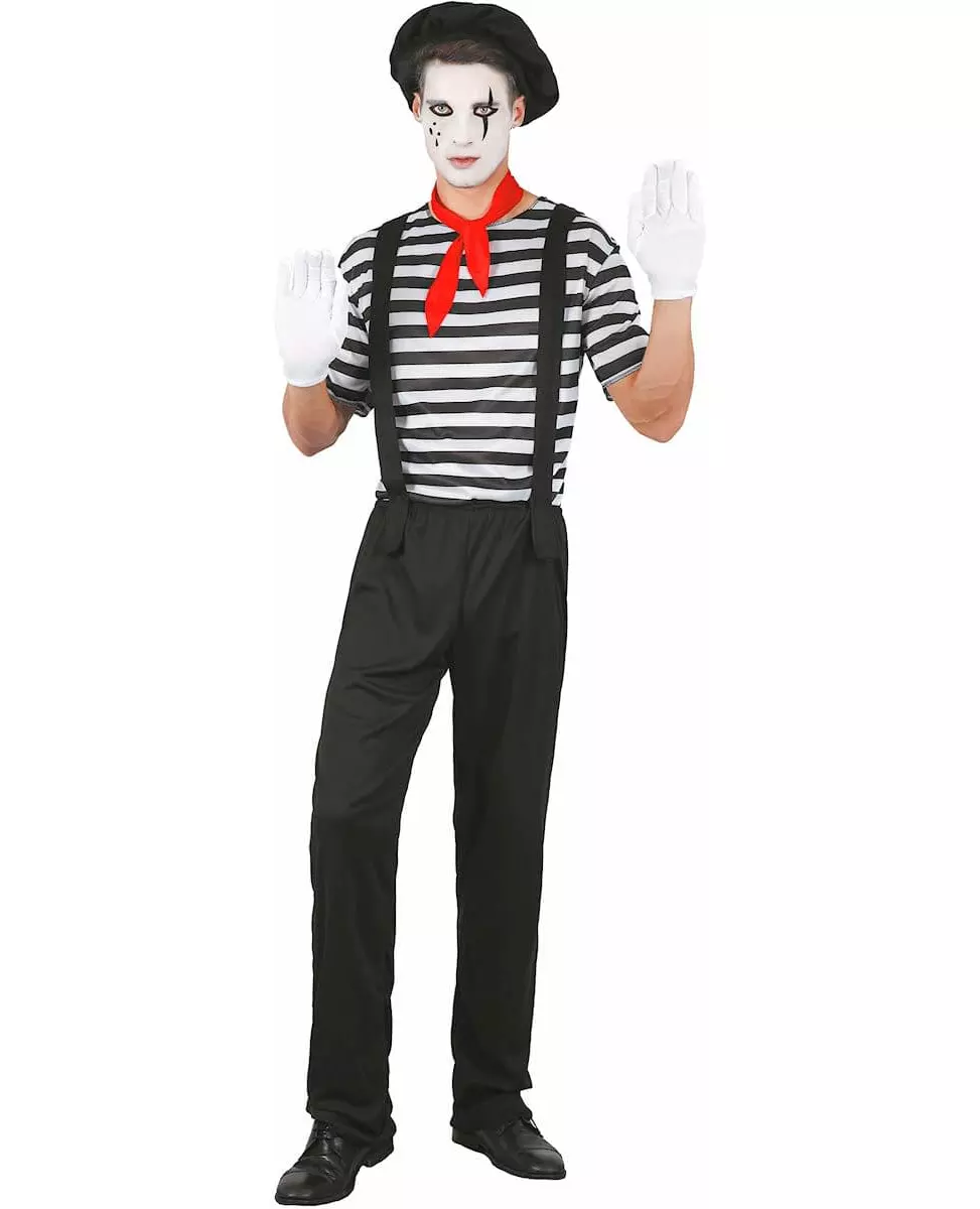 Ikke snakk, bare mim! Dette mimekostymet for menn inkluderer en t-skjorte, strømpeholdere, et skjerf, hansker og en lue. T-skjorten har korte ermer og er stripete med svarte og hvite striper. Buksene er svarte med strømpeholdere i samme farge. Et rødt skjerf er også inkludert, til å ha rundt halsen. Og til slutt vil hvite hansker og en svart lue sette prikken over i-en på mimekostymet ditt. Dette mimekostymet vil være perfekt for en utkledningsfest eller til karneval! Inkludert tilbehør: T-skjorte, strømpeholdere, skjerf, par hansker, lue. Materiale: 100 % polyester. Vedlikehold: Håndvask.