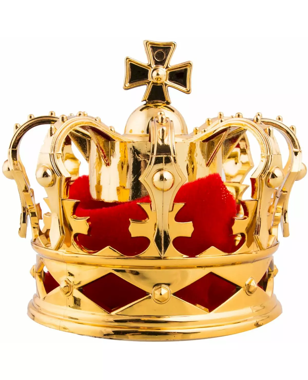 En minikrone for en ekte dronning! Dette tilbehøret er en hårspenne. Den måler omtrent 7,5 cm i diameter og omtrent 8 cm i høyden. Den representerer en minikrone med en vakker gullfarge, den settes enkelt på på samme måte som en hårspenne. Denne smykken vil være ideell for å fullføre et dronningkostyme, samtidig som den gir et vakkert gyllent og elegant preg! Inkludert tilbehør: 1 hårspenne Materiale: PVC, metall, filt