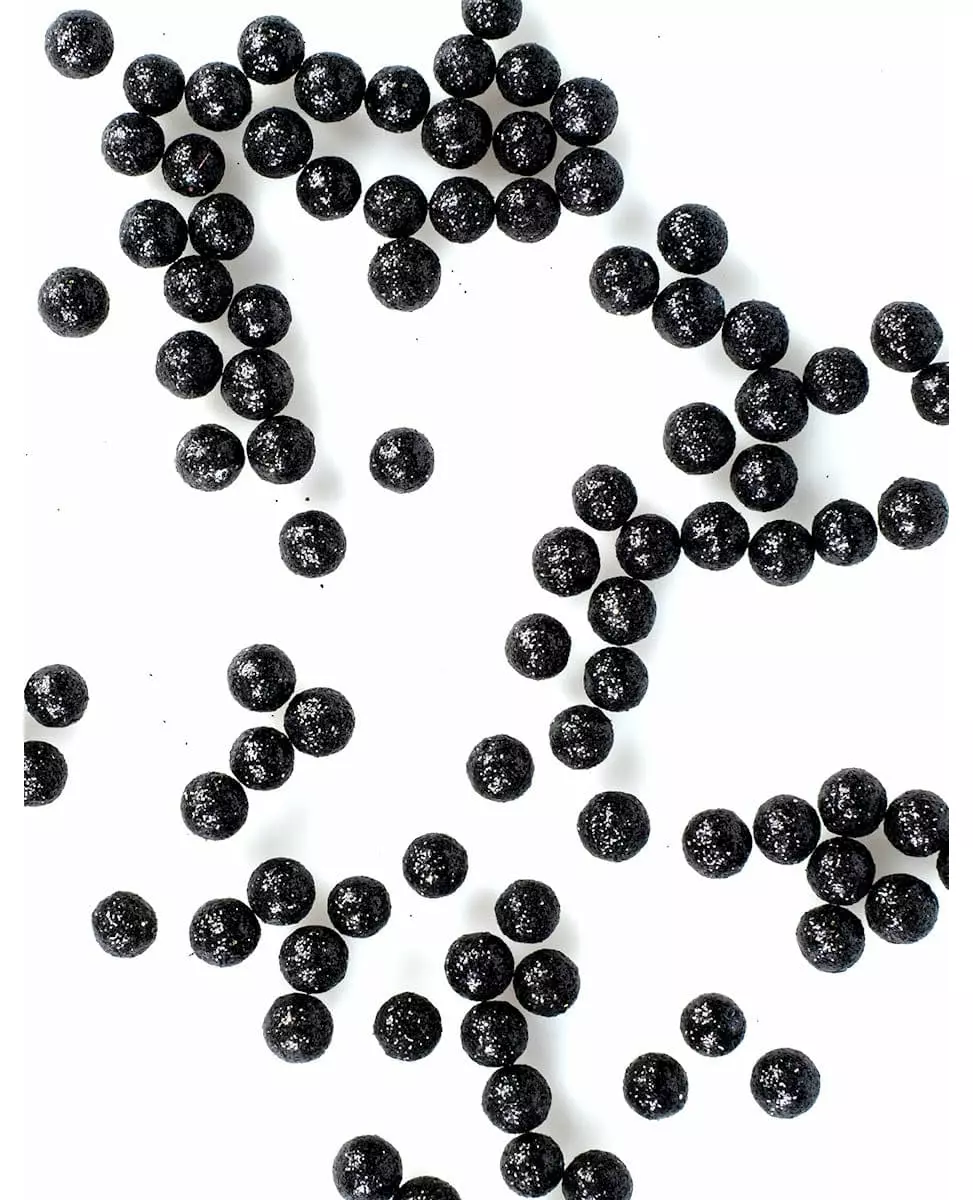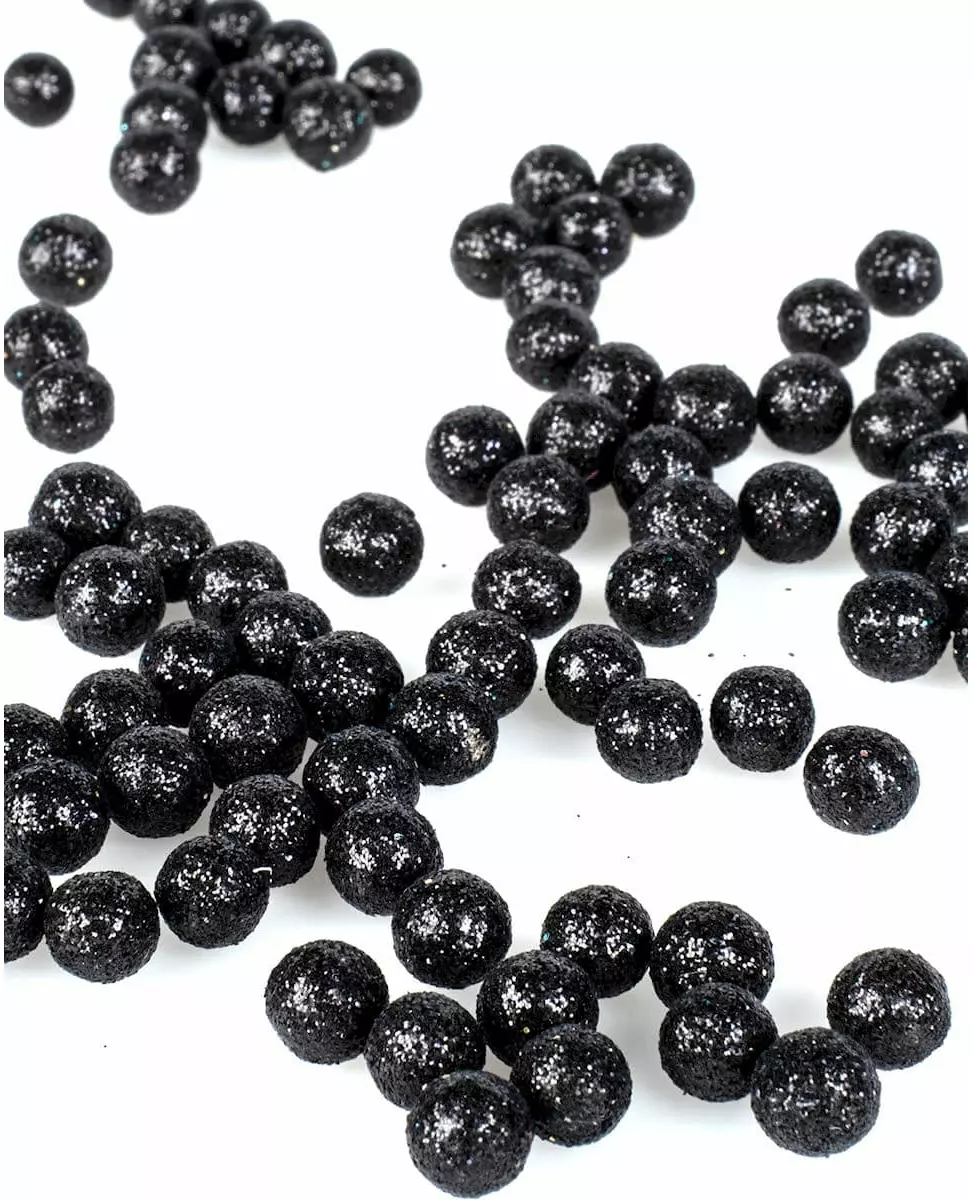 Mini svarte glitterkuler 8 mm 10 gr Ideelle for å perfeksjonere dekorasjonen din. Denne 10 grams posen inneholder svarte glitterkuler med en diameter på 8 mm.