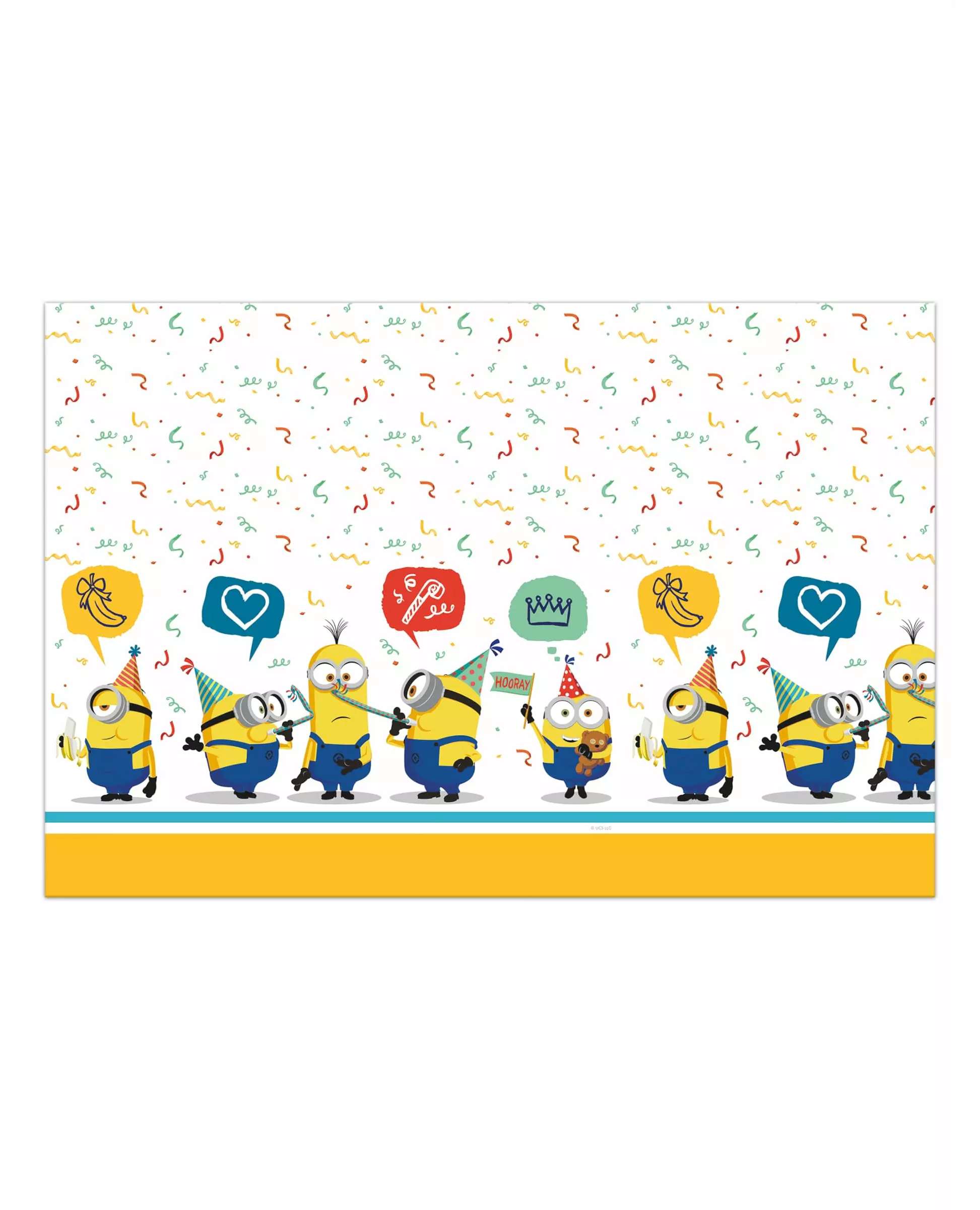 Dekk bursdagsbordet ditt med denne fine duken! Denne plastduken er offisielt lisensiert av Minions. Den måler omtrent 120 x 180 cm. Med sine flere farger (dominerende gul, blå, rød, grønn osv.) er denne rektangulære duken trykt med de berømte Minions-figurene! Denne fargerike duken vil dekke bordet ditt til en bursdagsfest eller et kostymearrangement! Inkludert tilbehør: 1 duk Materiale: Plast Stell: Håndvask