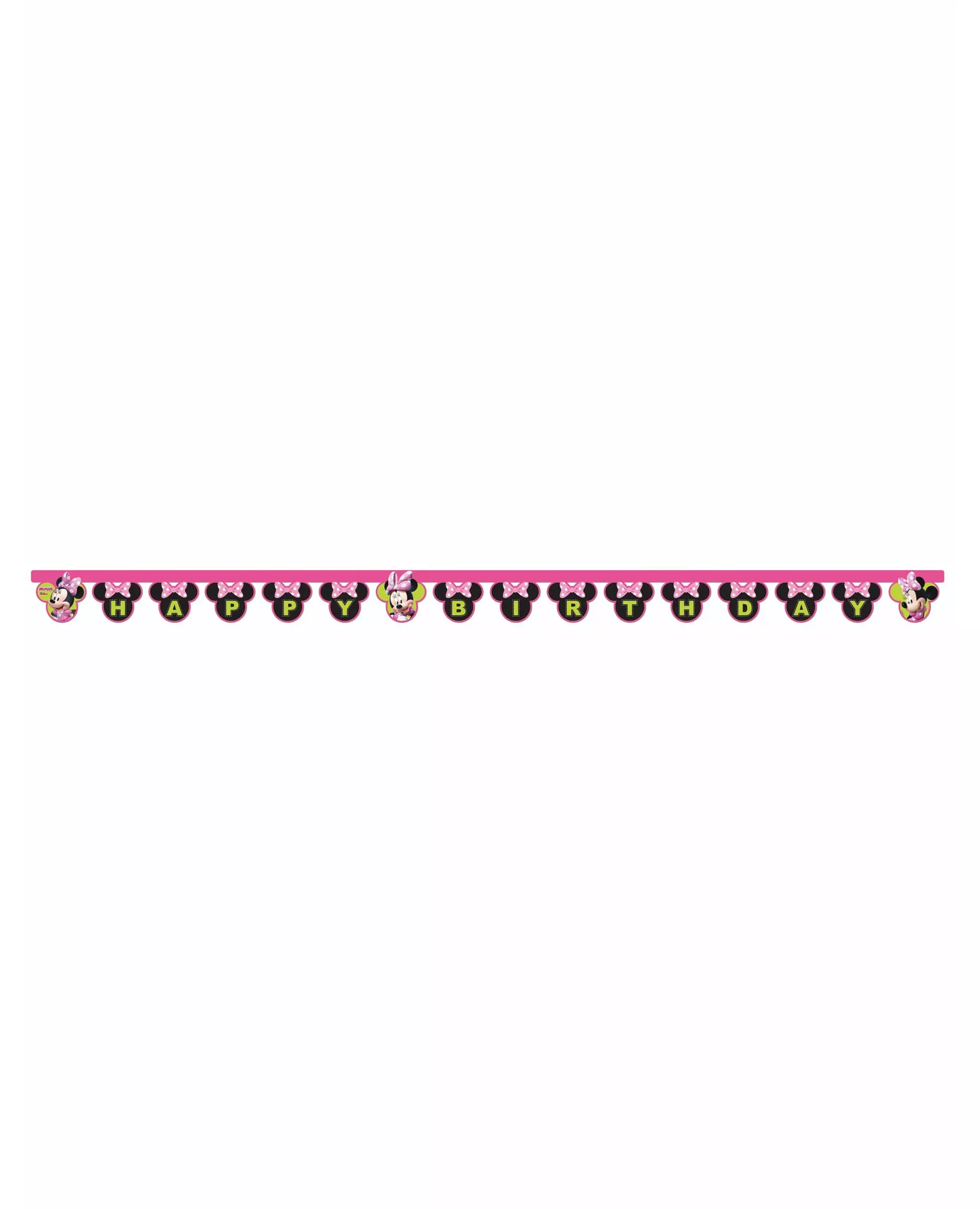 Minnie blir en del av festen! Denne bursdagsgirlanderen er offisielt lisensiert av Minnie™. Den er laget av papp og måler omtrent 2 m i lengden. Den består av klistremerker som danner meldingen «Gratulerer med dagen» omgitt av portretter av Minnie. Hvert av disse klistremerkene måler omtrent 11 cm. Denne girlanderen vil være perfekt for å fullføre dekorasjonen din til en Minnie-bursdag. Inkludert tilbehør: Leddgirlander Materiale: Papp