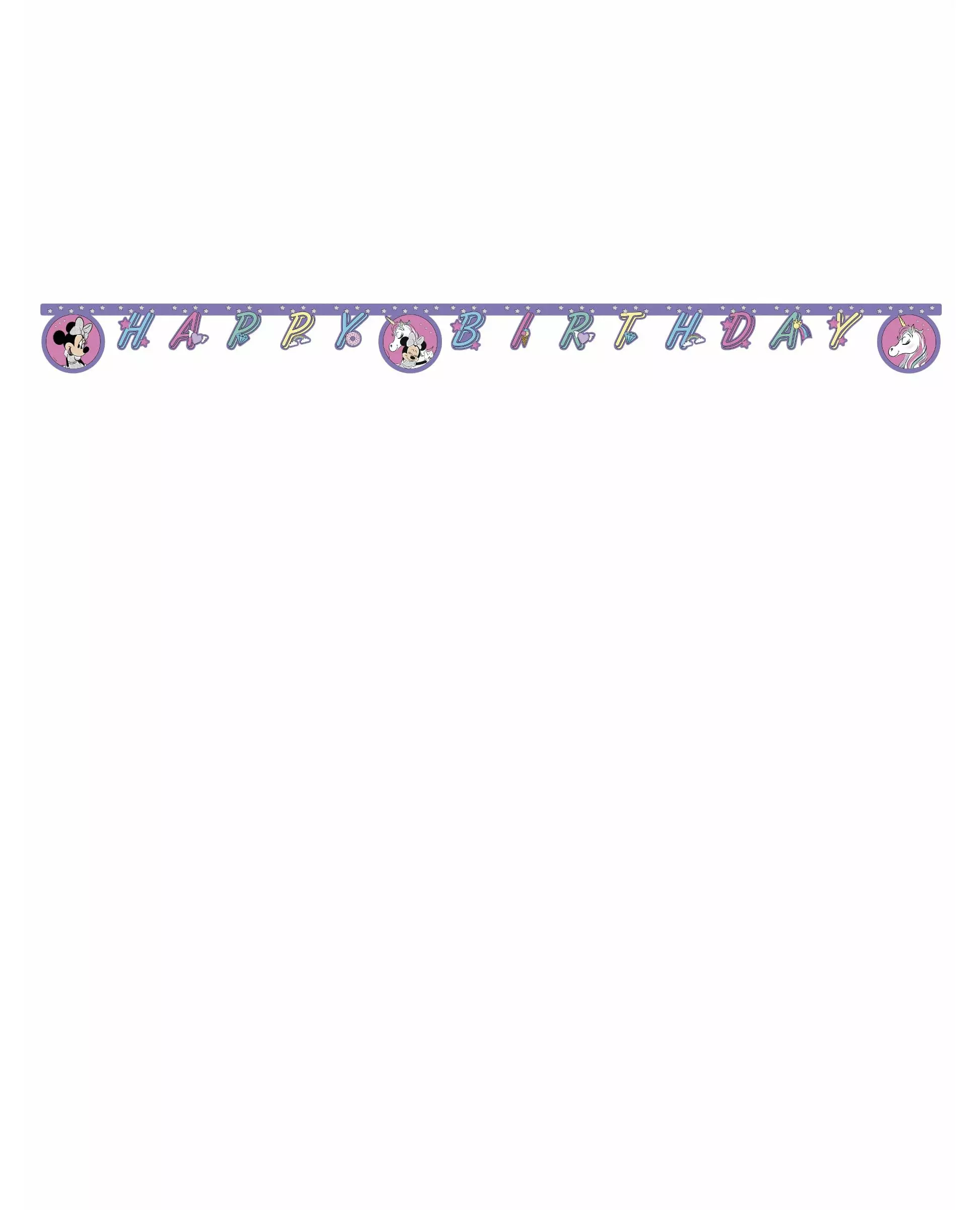 Gratulerer med dagen med Minnie og enhjørningen! Denne pappgirlanderen er offisielt lisensiert av Minnie and the unicorn™. Den måler omtrent 2 m i lengden og har påskriften «Gratulerer med dagen» på omtrent 15,5 cm i høyden. Vi kan se Minnie i følge med en enhjørning. En ideell girlander for en jentete dekorasjon på en Minnie-bursdag! Inkludert tilbehør: 1 girlander Materiale: Papp