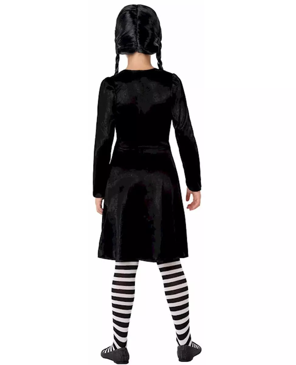 Et morbid damsel-kostyme til datteren din? Dette morbid damsel-kostymet er for jenter, det består av en kjole (parykk og strømpebukser ikke inkludert). Denne kjolen er svart, med lange ermer, den når knærne. Den inkluderer en hvit Peter Pan-krage med to hvite falske knapper under. Kjolen er strammet i midjen. Dette morbid damsel-kostymet vil være perfekt for Halloween-festen din. Inkludert tilbehør: Kjole Materiale: 100 % polyester Stell: Håndvask Målinformasjon: Addams Family, Wednesday