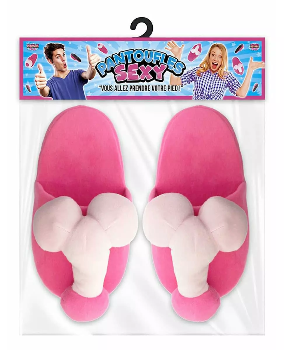 Varme føtter ... og en sans for humor i tillegg! Disse penis-tøflene for voksne er bevis på at komfort og latter går hånd i hånd! Myke og godt polstrede, de har en uvanlig form med en plysjpenis på toppen for et særegent og helt selvsikkert preg. Perfekt for en morsom gave, et utdrikningslag, eller bare for å slappe av hjemme med originalitet, disse tøflene garanterer en avslappet og humoristisk atmosfære. Ta dem på uten å nøle for å gjøre et plask fra det øyeblikket du tar dine første skritt! Tilbehør inkludert: 1 par tøfler