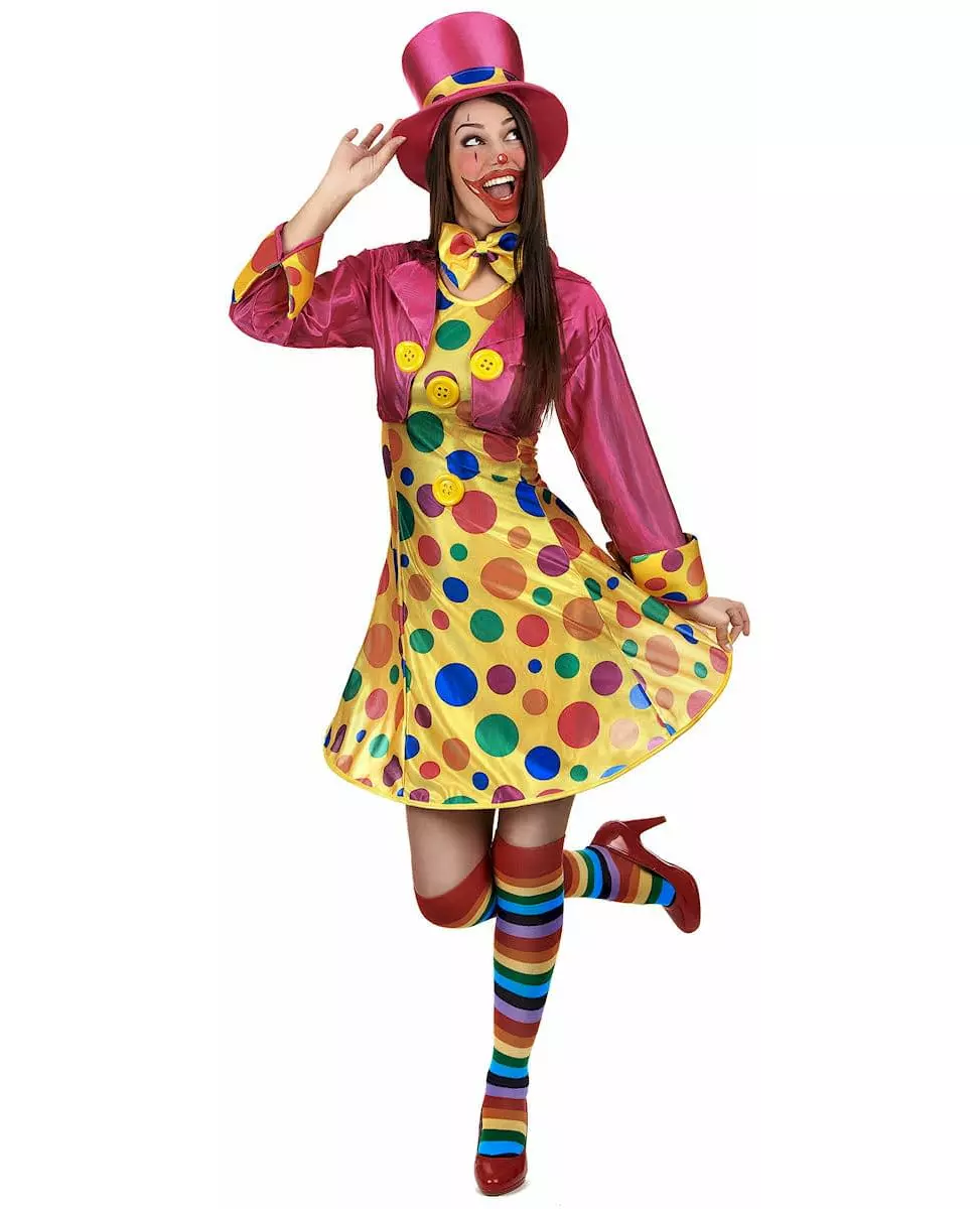 Nydelig 4-delt kostyme! Dette klovnekunstnerkostymet for kvinner består av en kjole, en jakke, en hatt og en sløyfe (sko og strømper er ikke inkludert). Dette klovnekostymet vil være ideelt for å live opp utkledningsfestene dine. Inkludert tilbehør: Kjole Jakke Hatt Sløyfe Materiale: 100 % polyester Vedlikehold: Håndvask