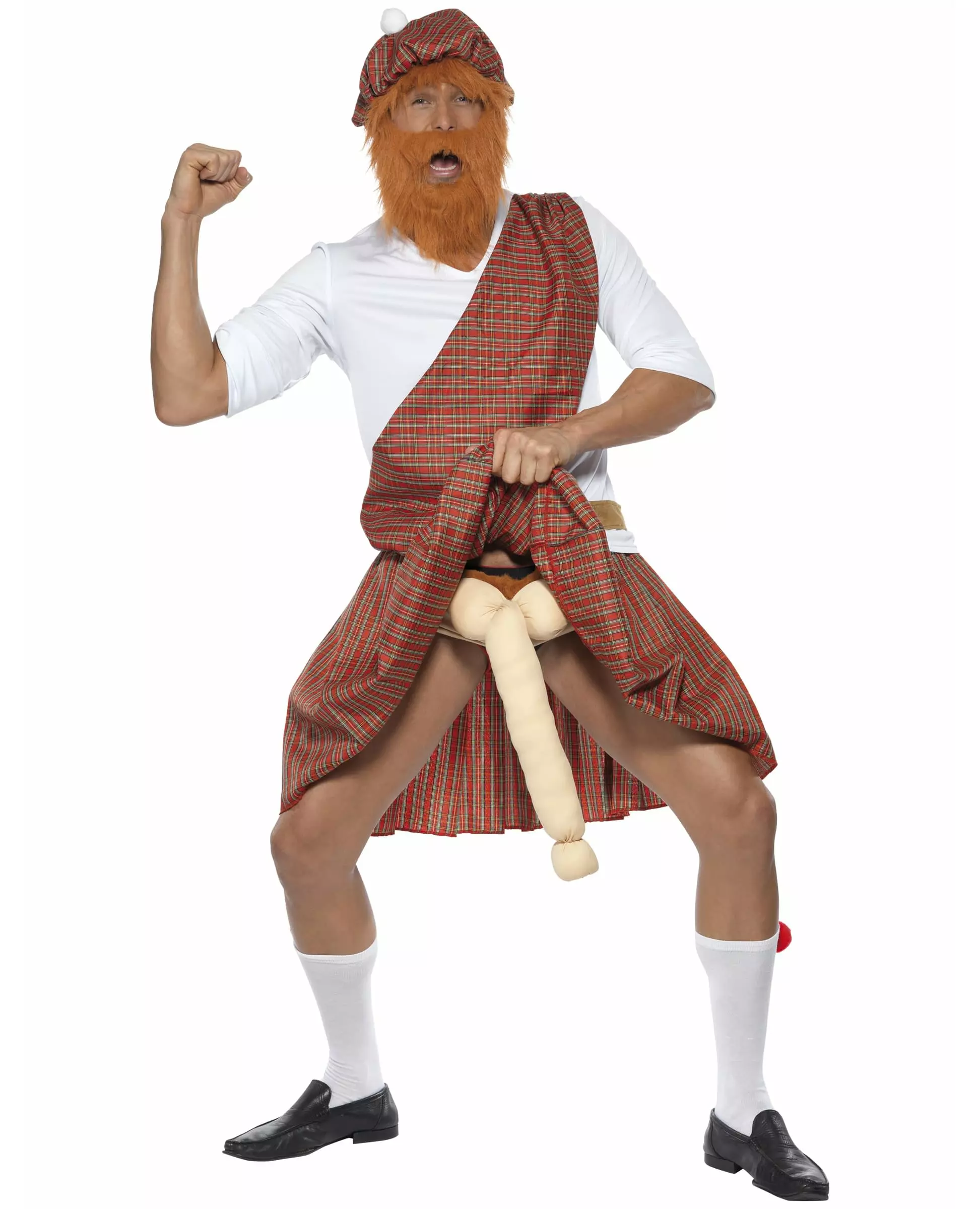 Komplett sett! Dette humoristiske skotske kostymet for menn består av seks elementer. En hvit kortermet T-skjorte med en presist ferdig rutete kilt knyttet på, som matcher hatten med hår. Et rødt skjegg som er lett å ha på seg takket være små strikker. Et belte med en falsk penis som kan justeres med en ripe. Et par hvite sokker følger også med (sko ikke inkludert). Dette kostymet er ideelt for å live opp utkledningsfestene dine, spesielt under St. Patricks dag, og få alle vennene dine til å le. Inkludert tilbehør: T-skjorte Kilthatt Skjeggbelte Sokker Materiale: 100 % polyester Vedlikehold: Håndvask