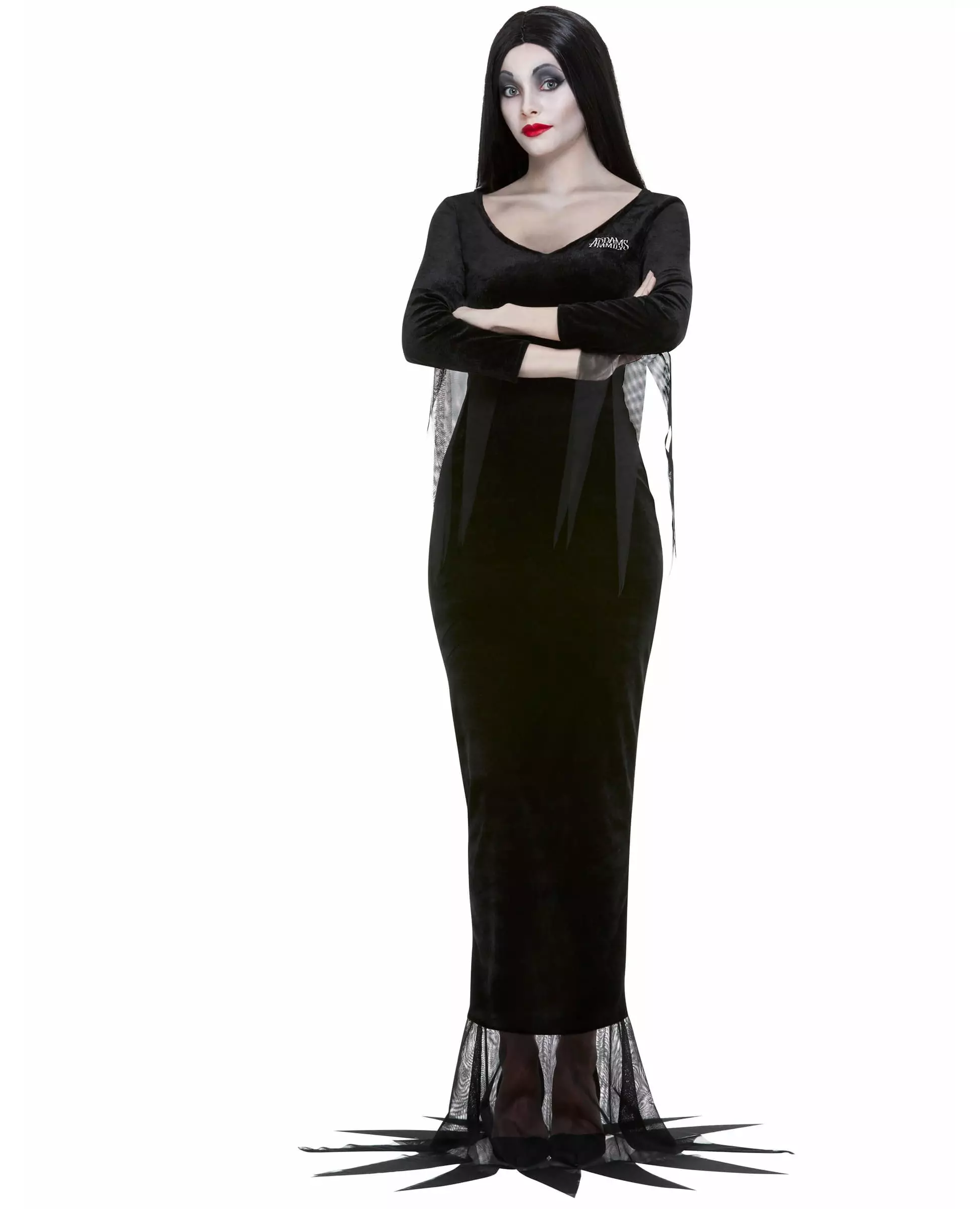 Bli den ondeste bimboen med dette Morticia-kostymet! Dette Morticia-kostymet er offisielt lisensiert av The Addams Family®. Dette kostymet er for kvinner, det inkluderer kjole og parykk (sko og sminke er ikke inkludert). Fløyelskjolen er lang til føttene, små svarte stoffslør henger fra ermene på kjolen. Kjolen er tettsittende og sexy, den vil fremheve kurvene dine. Alt du trenger er den svarte parykken med langt, rett hår for å legemliggjøre den ekte Morticia! Bruk dette Morticia-kostymet til din neste Halloween-fest og ønsk gjestene dine velkommen til ditt uhyggelige hjem! Materiale: POLY (100,0 %). Inkludert tilbehør: Parykk. Stell: Håndvask.