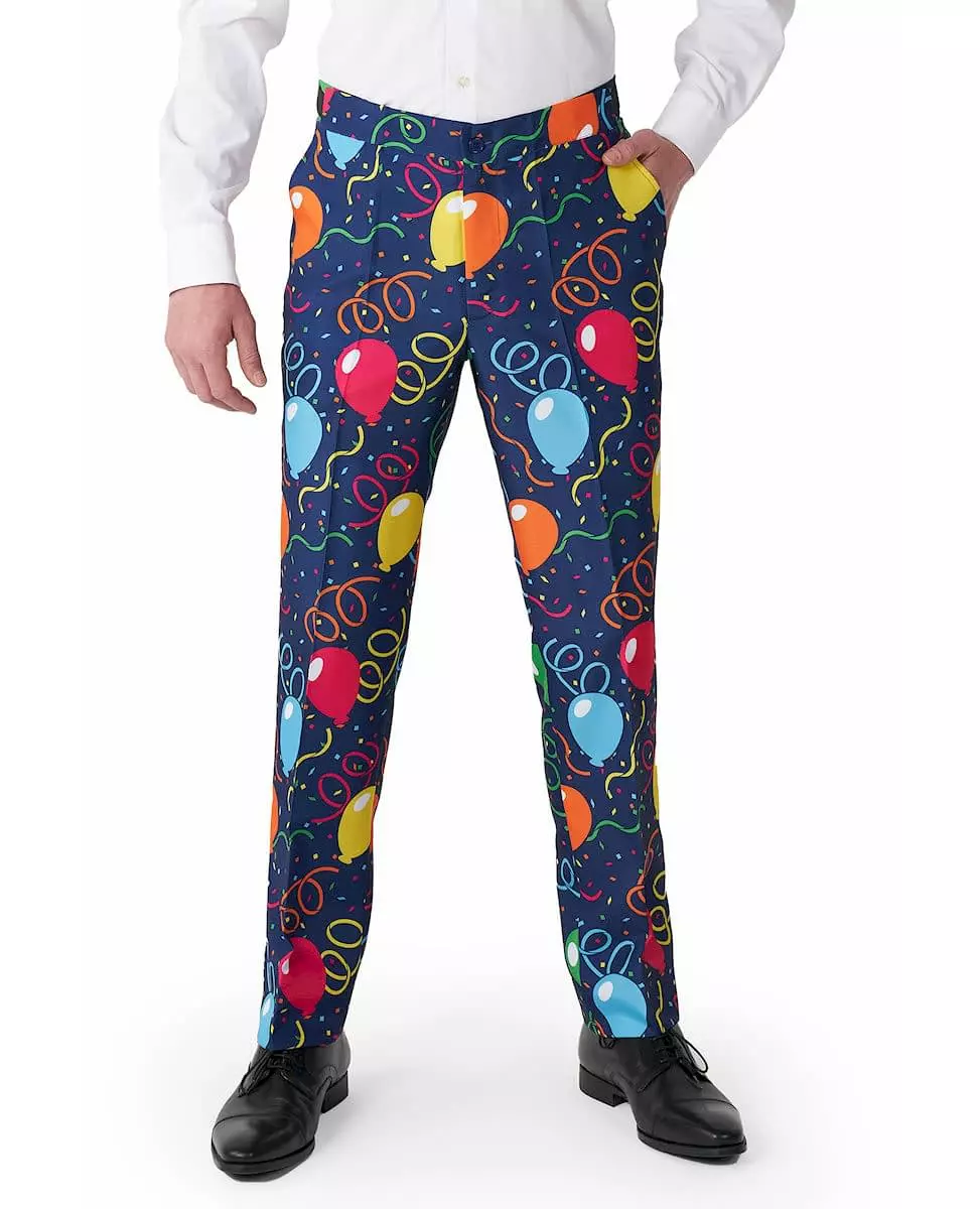 Et stilig kostyme for en elegant kveld! Denne Mr. Balloons marineblå dressen for menn er offisielt lisensiert av Suitmeister™. Den består av en jakke, bukse og slips. Hele dressen er laget av et tykt, kvalitetsstoff, med trykk av ballonger og konfetti i alle farger, hvilende på en blå bakgrunn. Toppen av dressen vil være behagelig å ha på seg, utstyrt med to falske sidelommer, som lukkes med to plastknapper foran på jakken. Nederdelen er en komfortabel dressbukse som matcher jakken, med en lomme på hver side. Den lukkes med glidelås og en plastknapp. Til slutt vil et slips i harmoni med ensemblet fullføre antrekket ditt. Det kan enkelt knytes rundt halsen. Dette fasjonable kostymet vil være perfekt for en utkledningsfest eller en elegant kveld! Inkludert tilbehør: Jakke Bukser Slips Materiale: Polyester Stell: Maskinvaskbar