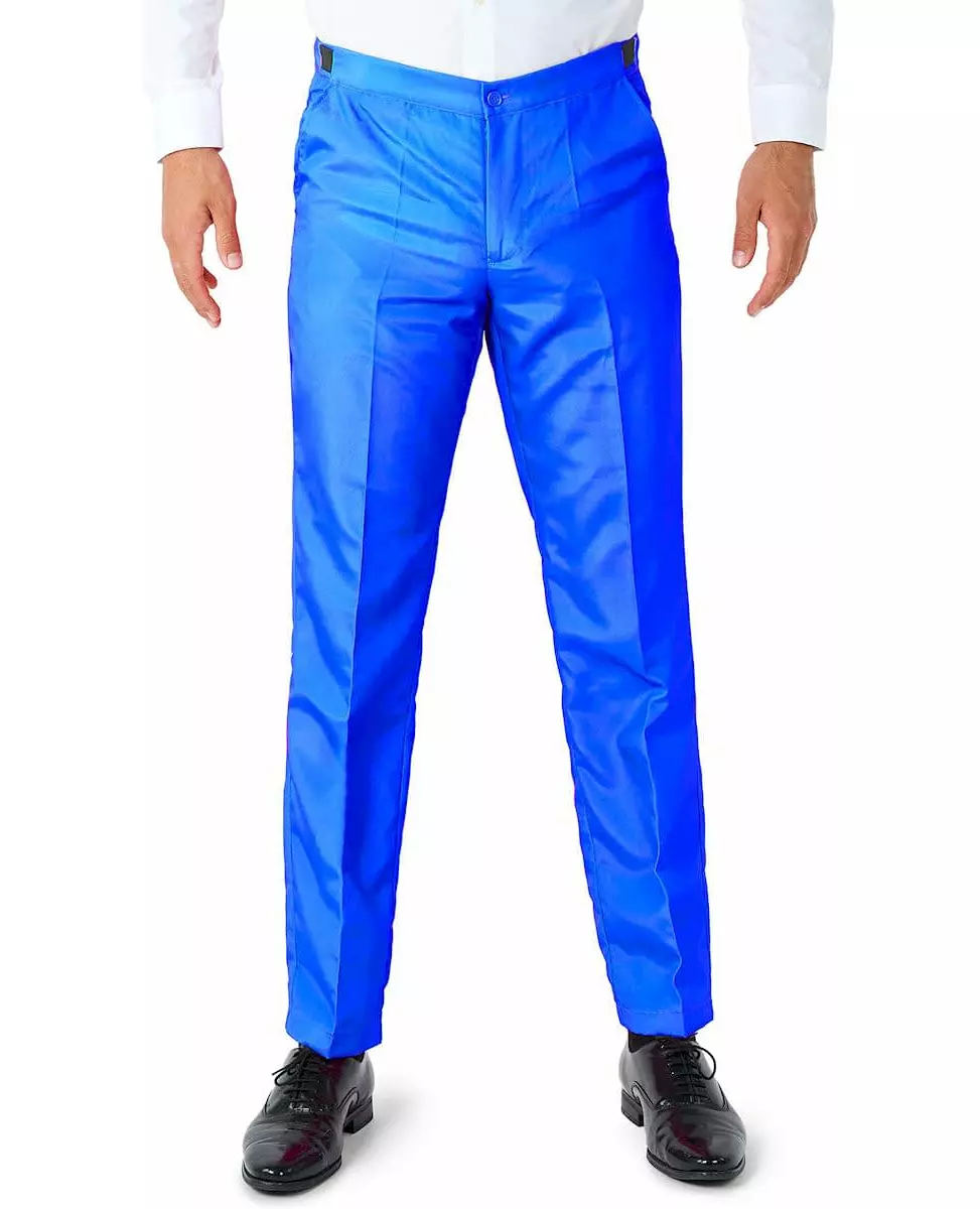 Bli den mest stilige på festen Denne blå Suitmeister™-dressen for menn består av en jakke, bukse og slips. Hele dressen er laget av et kvalitetsblått stoff. Jakken har to falske lommer på sidene og lukkes med knapper. Buksene har også lommer foran og lukkes med en knapp og glidelås. Til slutt knytes slipset enkelt rundt halsen. Denne blå dressen vil være perfekt for å få deg til å skille deg ut på din neste kostymefest. Inkludert tilbehør: Jakke Bukser Slips Materiale: 100 % polyester Vedlikehold: Håndvask
