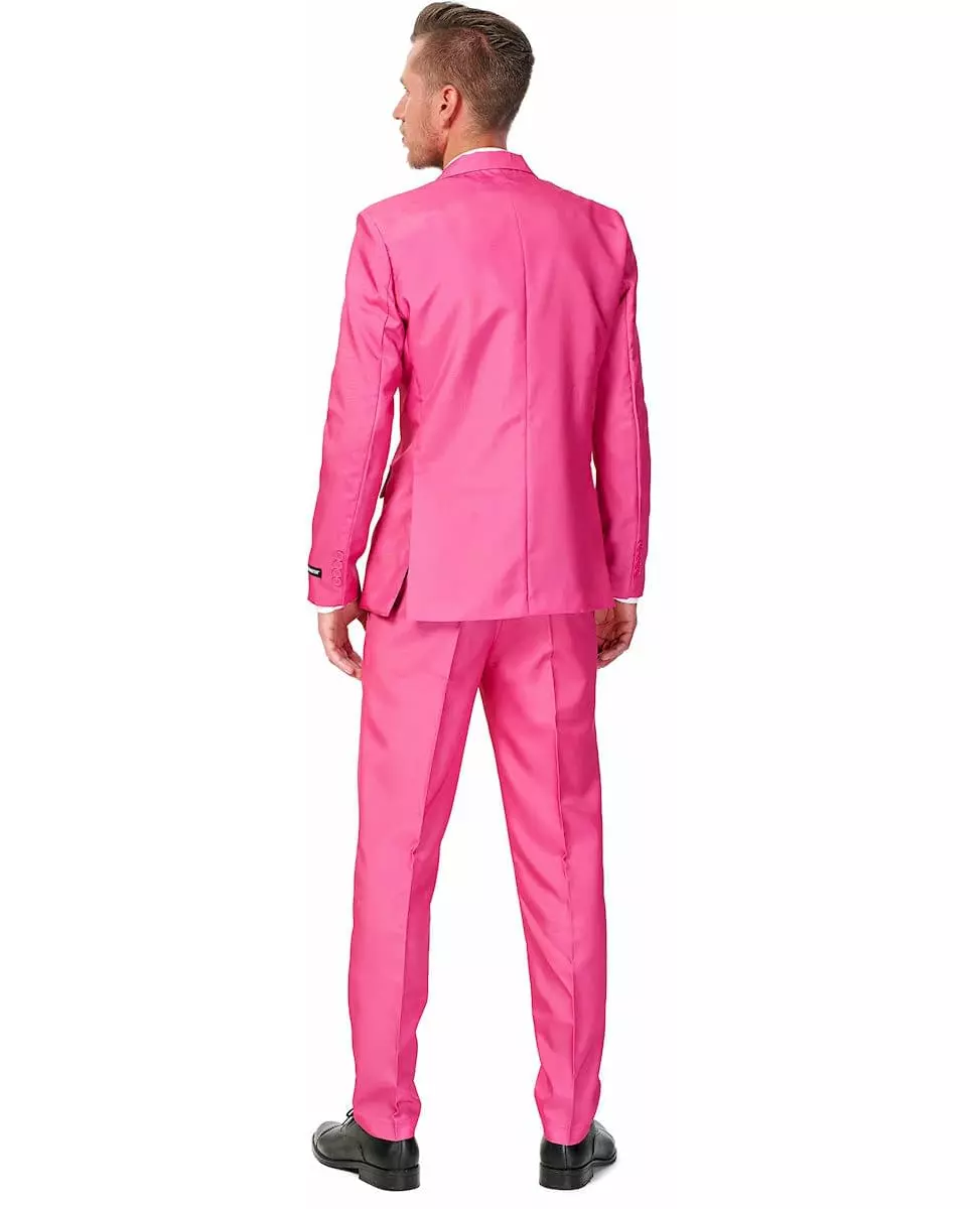 Gå for den komplette rosa looken! Denne rosa dressen fra Suitmeister for menn består av jakke, bukse og slips. Dressjakken har skulderstropper og en falsk brystlomme. Jakken er fôret og lukkes foran med knapper. De matchende rosa buksene har lommer foran. De har elastikk i midjen og lukkes foran med knapp og glidelås. Et slips vil fullføre dressen. Denne dressen vil være perfekt for å overraske samtidig som den forblir elegant. Inkludert tilbehør: Jakke Bukser Slips Materiale: 100 % polyester Stell: For hånd