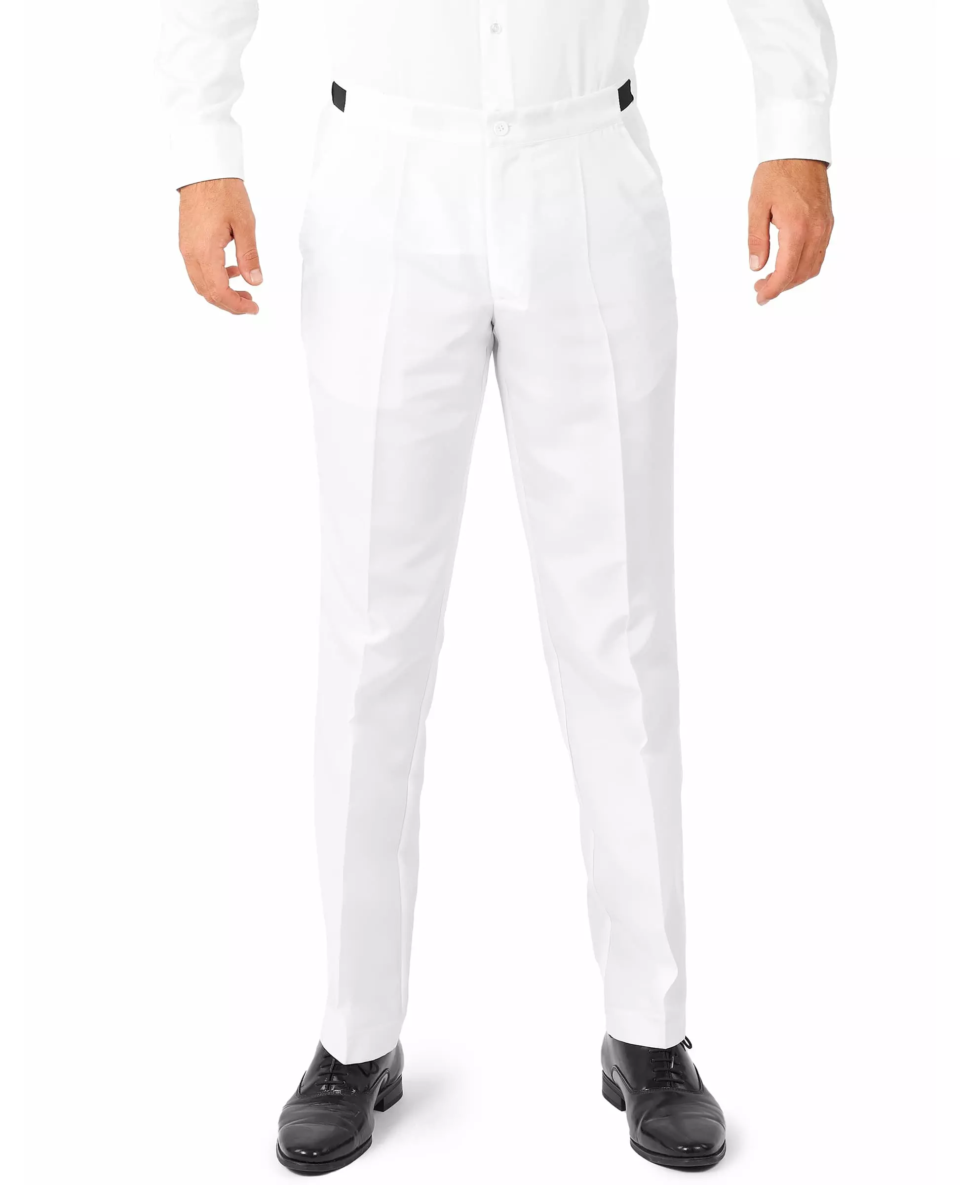 Våg å bruke hvitt! Denne hvite Mr. Solid-dressen for menn er offisielt lisensiert av Suitmeister™. Den inkluderer bukser, jakke og slips. Denne elegante, helhvite dressen er laget av stoff; jakken lukkes med to knapper foran og har to fuskelommer. Nederdelen er komfortable hvite bukser med to sidelommer og glidelåslukking. Slipset vil fullføre antrekket perfekt! Denne hvite Mr. Solid Suitmeister™-dressen vil være perfekt for en elegant kveld eller et svart-hvitt-tema!. Inkludert tilbehør: Jakke Knyte Bukser Materiale: polyester Pleie: håndvask