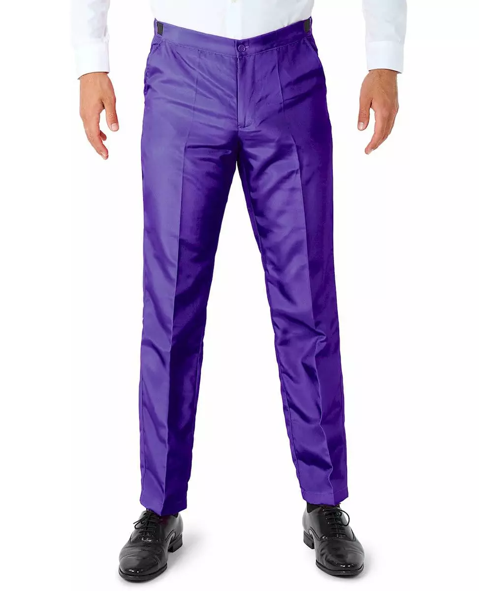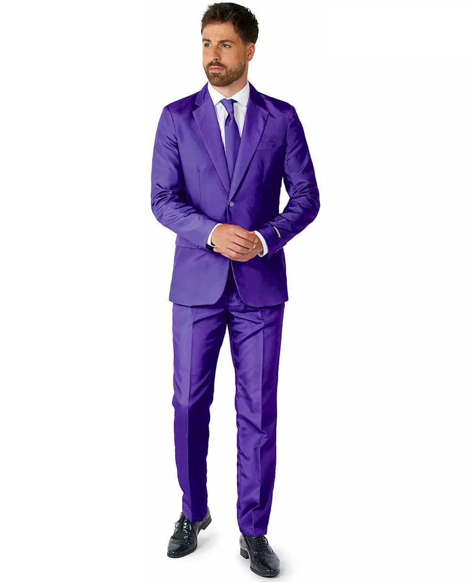 Få frem din naturlige klasse Denne lilla Suitmeister™ herredressen består av jakke, bukse og slips. Hele dressen er laget av lilla stoff av høy kvalitet. Jakken har fuskelommer på sidene og lukkes foran med knapper. De matchende buksene har elastisk midje og hekte- og glidelåslukking foran. Den har lommer foran. Det lilla slipset knytes enkelt rundt halsen. Denne lilla dressen vil være perfekt for å se elegant ut under alle omstendigheter. Inkludert tilbehør: Jakke Bukser Slips Materiale: 100 % polyester Pleie: Håndvask