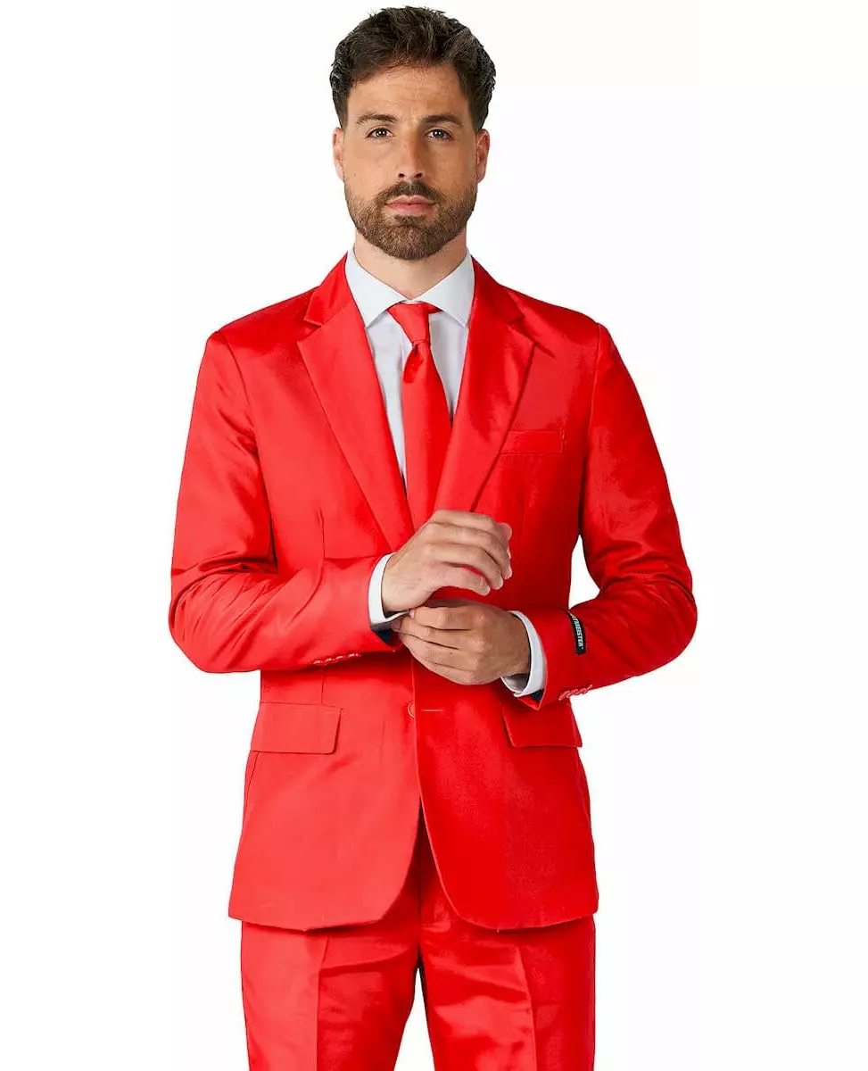 For et komplett rødt utseende! Denne røde Mr. Solid Suitmeister™-herredressen består av jakke, bukse og slips. Hele dressen er laget av høykvalitets, helrødt stoff. Jakken har to sidelommer og lukkes med knapper. De matchende buksene har lommer foran og lukkes med knapp og glidelås. Det røde slipset er også enkelt å knyte rundt halsen. Denne røde Mr. Solid-dressen vil garantert avsløre din naturlige klasse med originalitet! Inkludert tilbehør: jakke, knytebukse Materiale: 100 % polyester Vedlikehold: Håndvaskbar