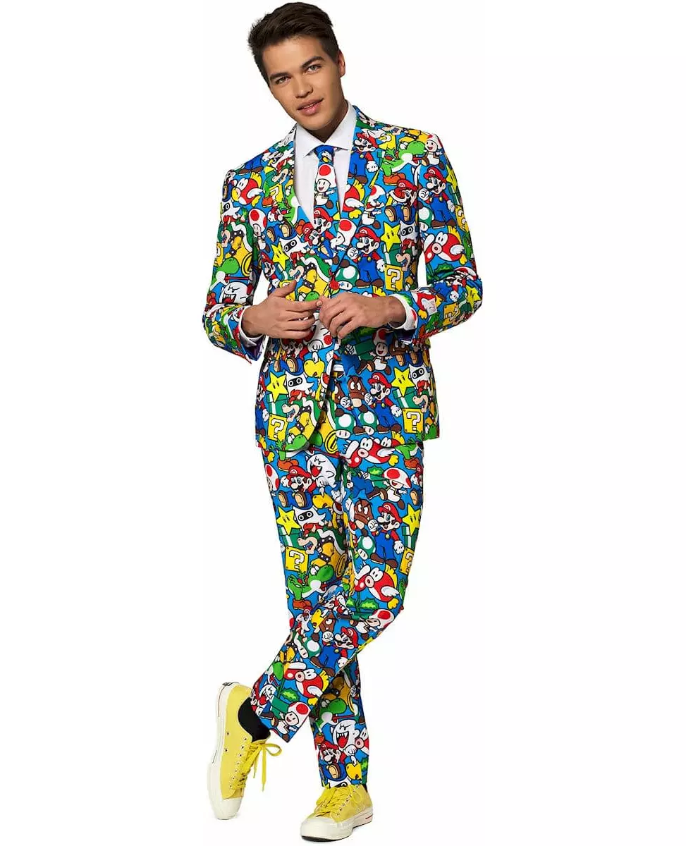 Et elegant og morsomt kostyme! Dette kostymet fra Opposuits™-merket er offisielt lisensiert av Super Mario™. Det inkluderer en jakke, et slips og en bukse. Dette 3-delte kostymet er laget av et kvalitetsstoff med motiver fra Super Mario™-videospillet som: Mario, Luigi, Toad, Bowser og alle de onde skapningene fra spillet for et elegant, fargerikt og originalt utseende! Kostymejakken er komfortabel, med to falske sidelommer og en i brysthøyde. Jakken lukkes med to plastknapper foran på jakken. Buksene er komfortable å ha på seg, og den matchende jakken har to lommer. Den lukkes med en knapp og en glidelås. Slipsen vil fullføre kostymets elegante utseende, du trenger bare å knyte den rundt halsen! Dette Mr. Super Mario™-kostymet for voksne vil være perfekt for en utkledningsfest med et elegant tema eller et videospilltema! Inkludert tilbehør: Jakke Bukser Slips Materiale: 100 % polyester Vedlikehold: Håndvask