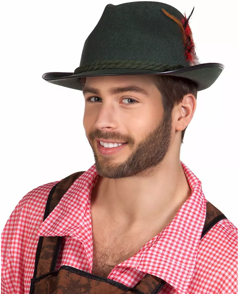 Dra til Oktoberfest! Denne mørkegrønne bayerske hatten for voksne er det essensielle tilbehøret for å fullføre et tradisjonelt tysk antrekk. Laget av et filtstoff, er den dekorert med en flettet snor nederst og en pen rød og oransje fjær på siden, tro mot den bayerske stilen. Ideell for et karneval, en folkefestival eller en kveld med Oktoberfest-tema, vil denne hatten sette prikken over i-en på festantrekket ditt! Inkludert tilbehør: 1 hatt