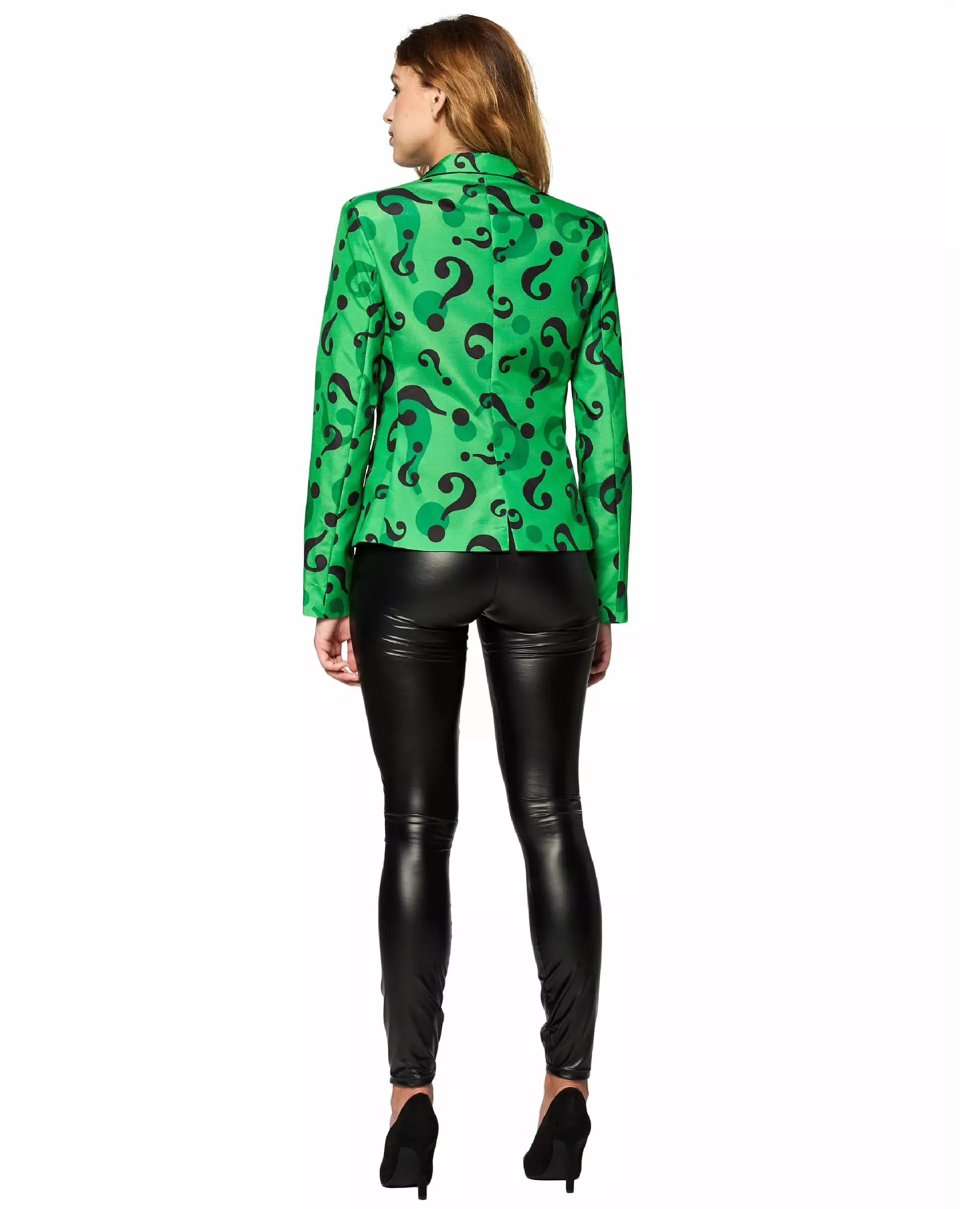 Bli Gothams terror med denne offisielt lisensierte Suitmeister™-jakken for kvinner! Denne jakken for kvinner er offisielt lisensiert av Suitmeister™. Bukser, sko, sløyfe og skjorte er ikke inkludert. Jakken er grønn med spørsmålstegn for å etterligne antrekket til en kjent tegneseriefigur, Batmans fiende: Gåten! Invitert til en superhelttemafest? Den offisielt lisensierte Suitmeister™-jakken vil være perfekt! Inkludert tilbehør: Jakke Materiale: 100 % polyester Stell: Maskinvaskbar