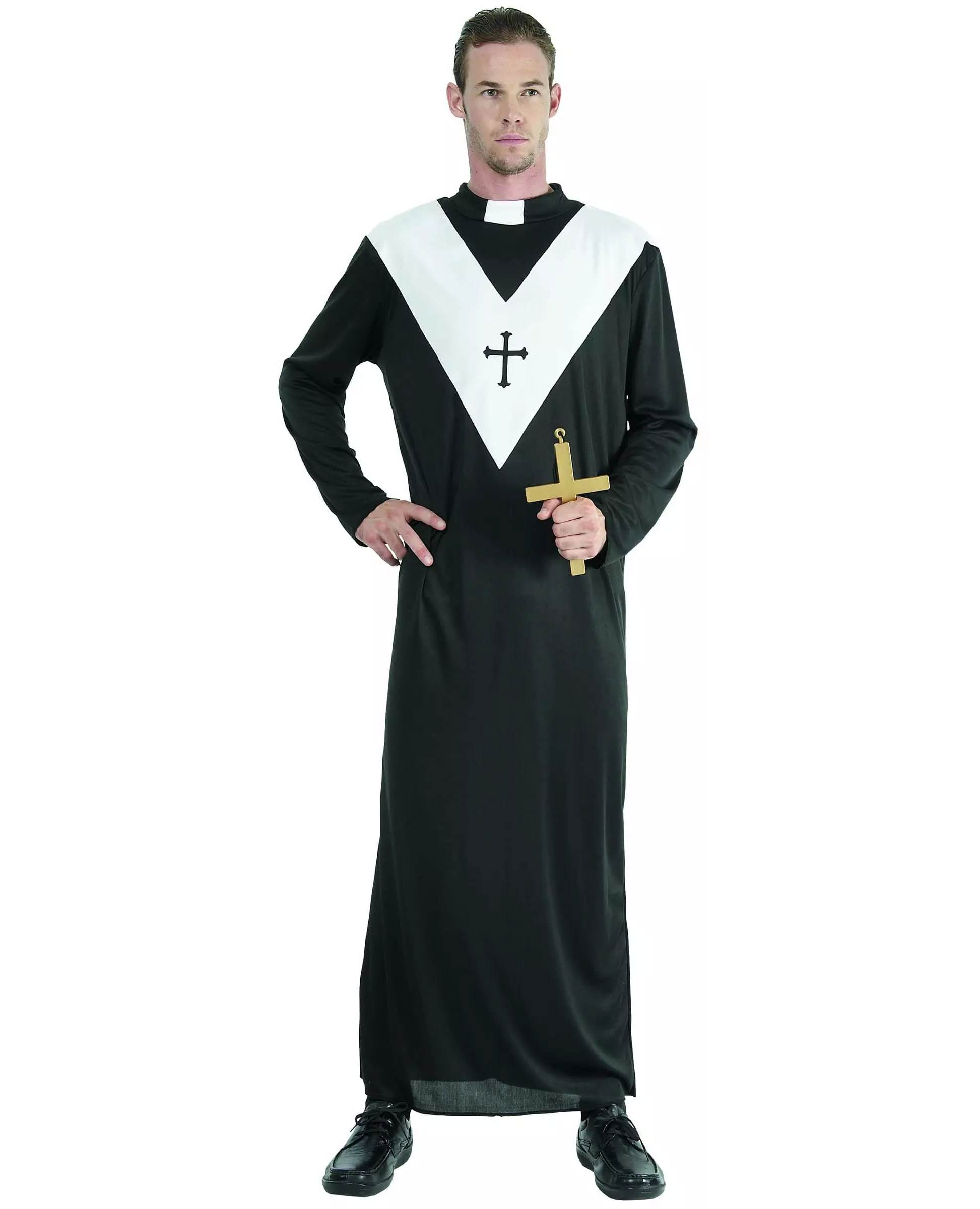 Konverter! Dette munkekostymet er for menn. Det består av en lang svart kappe med hvit krage. Denne størrelsen passer alle, medium/stor, og passer de fleste. Dette kostymet er ideelt for en utkledningsfest med venner. Inkludert tilbehør: kappe Materiale: 100 % polyester Vedlikehold: Håndvaskbar