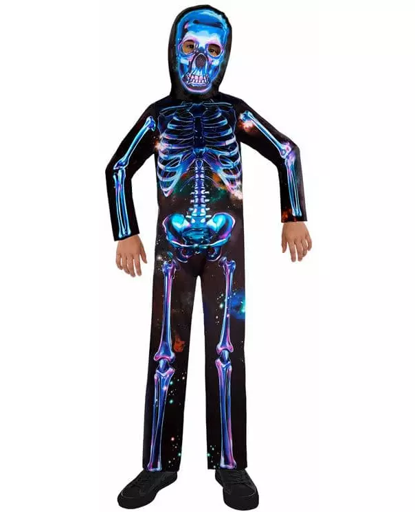 Neon skjelettkostyme laget av resirkulert stoff til barn