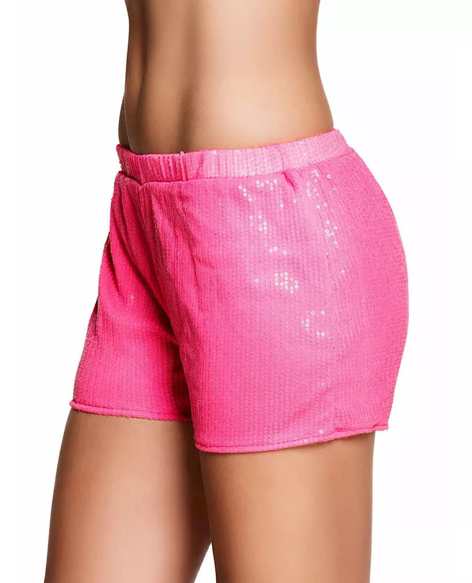 Få discofeber! Disse neonrosa paljettshortsene er for kvinner. De måler omtrent 27 cm i lengden og har en elastisk linning som passer alle kroppsformer. Ideell for å fullføre et disco- eller prangende kostyme på utkledningsfester eller karneval. Inkludert tilbehør: Shorts Materiale: 70 % polyester - 30 % PVC Pleie: Håndvask