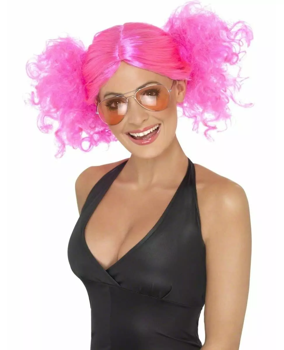 Med to rufsete musefletter! Denne neonrosa parykken for kvinner har et elegant snitt på toppen og to rufsete musefletter på sidene. Den vil være ideell for å gi kostymene dine et fargerikt preg og fullstendig endre utseendet ditt. Materiale: 100 % polyetylen 100 % polyetylen