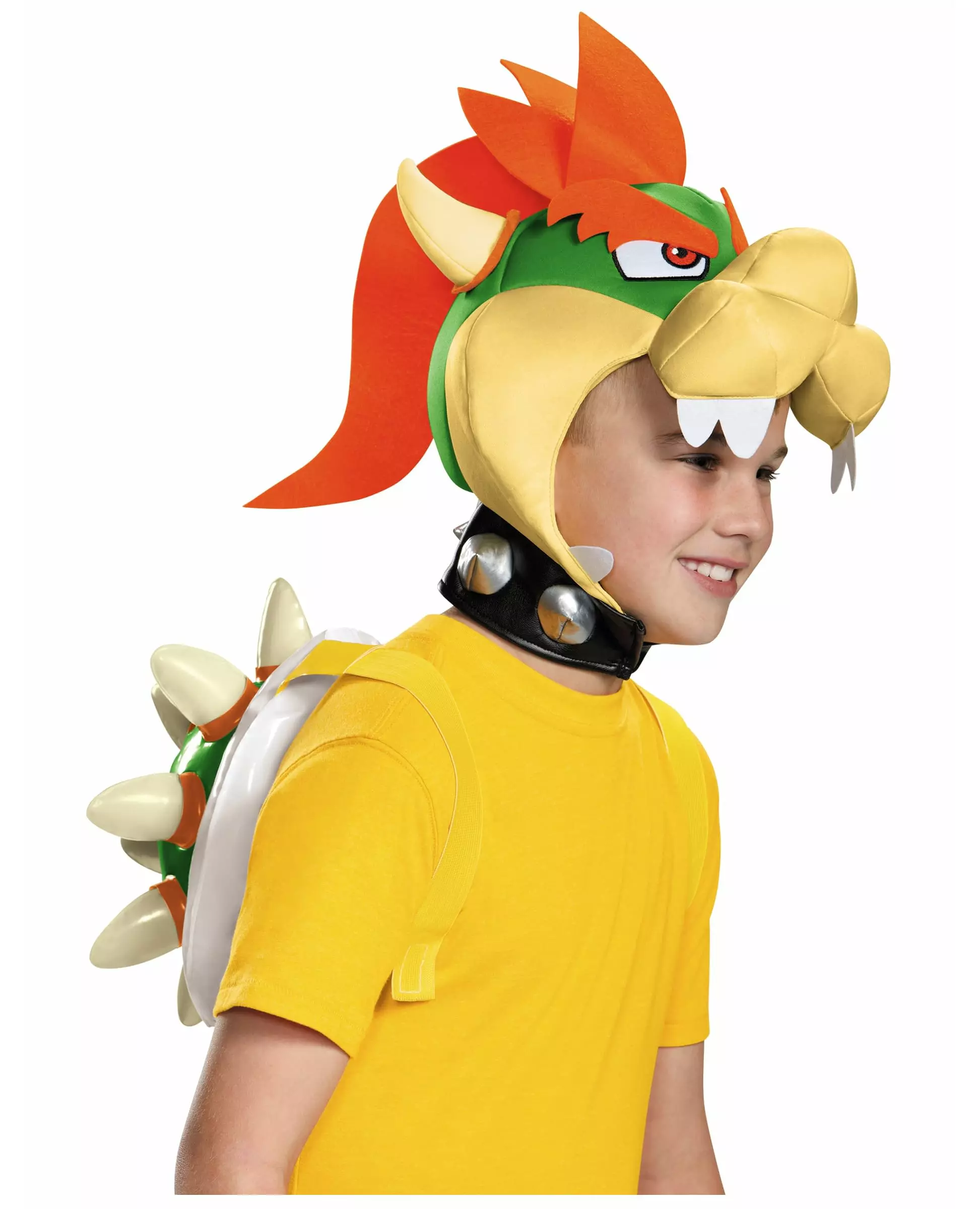 Utrolig morsomt! Dette barnesettet er lisensiert av Nintendo®. Det representerer Bowser, en av de slemmeste og morsomste figurene fra det berømte Super Mario-spillet! Hatten, med en hodeomkrets på omtrent 30 cm, sitter på hodet og er laget av halvstivt skum. Den omslutter barnets hode, ører og nakke. Bowsers hår er oransje og har en original form, han har også to horn på toppen av hodeskallen og vakre hvite tenner. For ekstra støtte er den svarte kragen, med imiterte skinnende sølvnagler, integrert i hatten og festes med borrelås foran på nakken. Sekken, med en diameter på omtrent 30 cm, representerer Bowsers piggdekkede skall. Originaliteten? Denne ryggsekken er laget av oppblåsbar plast for å bevare skallets utseende. Bli med inn i en verden av et av de mest berømte videospillene for en temakveld, bursdag, karneval eller til og med slutten av året! Inkludert tilbehør: Oppblåsbar ryggsekk Hodeplagg Materiale: Polyester og plast Stell: Håndvask Målinformasjon: Hatt: ca. 30 x 28 cm Veske: ca. 30 x 29 cm