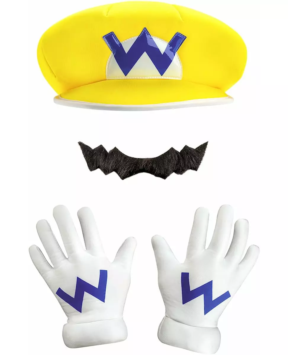 Bli Marios onde tvilling! Dette offisielt lisensierte Nintendo® Wario®-settet for voksne inneholder en hatt, en bart og et par hansker. Den gule hetten er trykt med bokstaven «W» i blått, i likhet med de hvite hanskene. Den falske barten er svart. Med dette Wario-settet kan du spille som Nintendos® mest berømte skurk på din neste videospilltemafest. Inkludert tilbehør: Bart, lue, 2 hansker