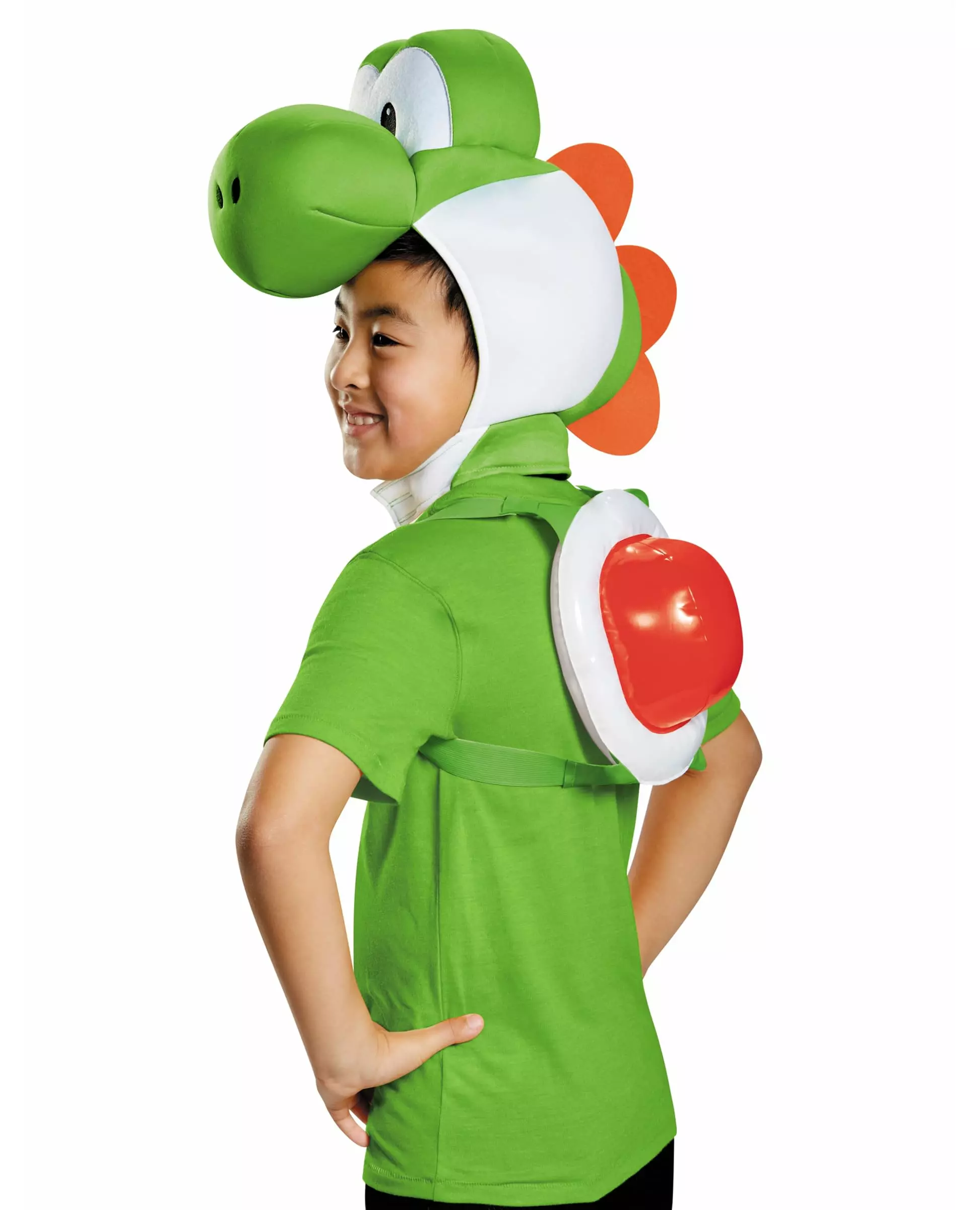 Superfølgesvenn, men også ... superhelt! Dette barnesettet består av en hatt og en ryggsekk. Det er lisensiert av Nintendo®. Det representerer Yoshi, Marios trofaste og berømte følgesvenn fra det berømte videospillet Super Mario! Den halvstive skumhatten sitter på hodet og dekker barnets hode, ører og nakke. Originaliteten ligger i størrelsen på Yoshis ansikt med den store, runde grønne nesen og brune øgleskjell. For ekstra støtte festes hatten med en ripe foran på nakken. Ryggsekken representerer Yoshis rygg og en skjell. All originaliteten ligger i det oppblåsbare plastmaterialet i denne ryggsekken som gir den volum. Bli med i den morsomme verdenen av videospill for en kveld, og spesielt Super Mario!. Inkludert tilbehør: Hatt Oppblåsbar ryggsekk Materiale: Halvstivt skum og plast Stell: Håndvask