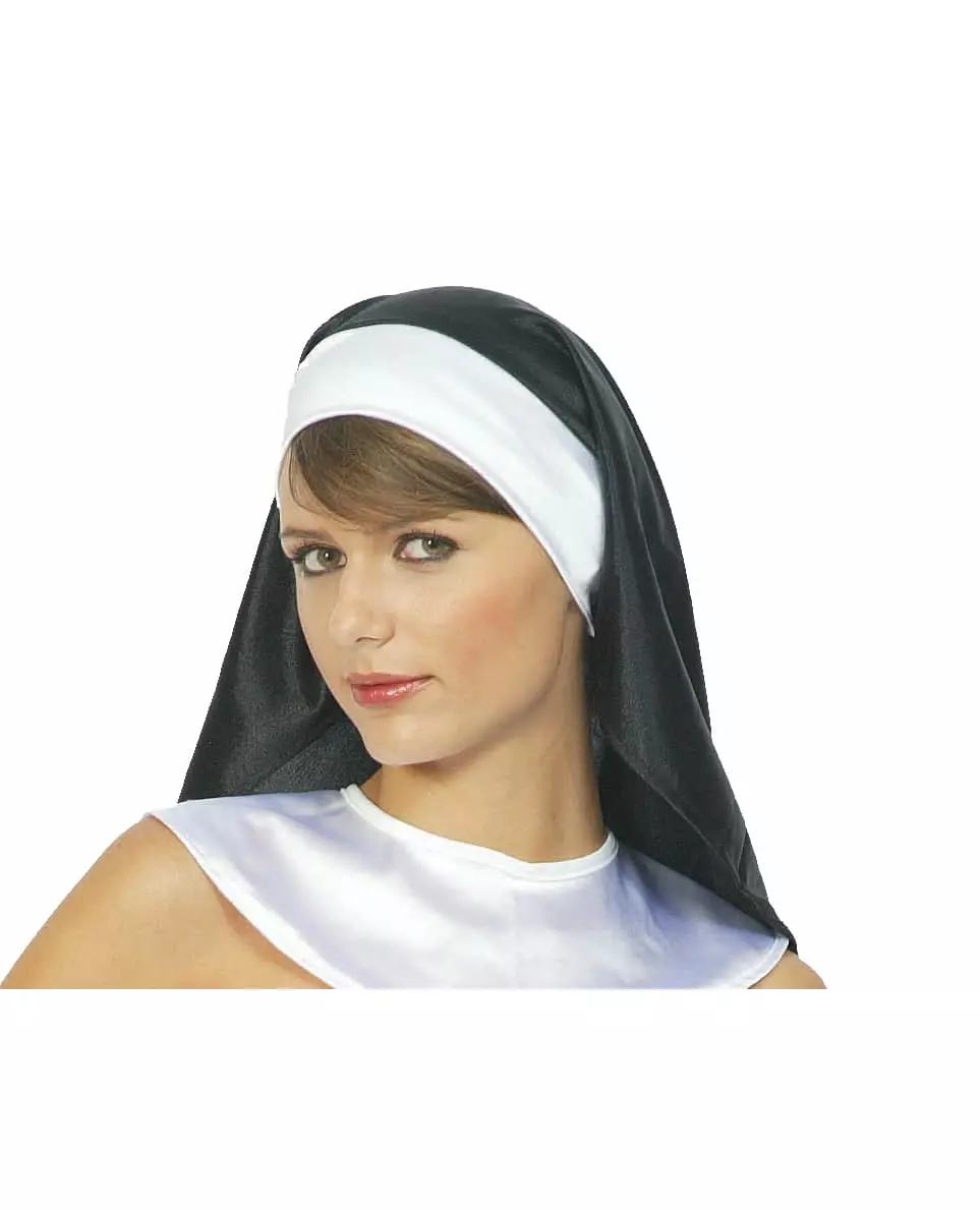 Vær en nonne til tindene av hodet! Dette nonnehodeplagget er for voksne. Det er svart og hvitt. Dette tilbehøret vil fullføre nonnekostymet ditt perfekt, enten det er til utkledning eller temafester. Materiale: 100 % polyester 100 % polyester