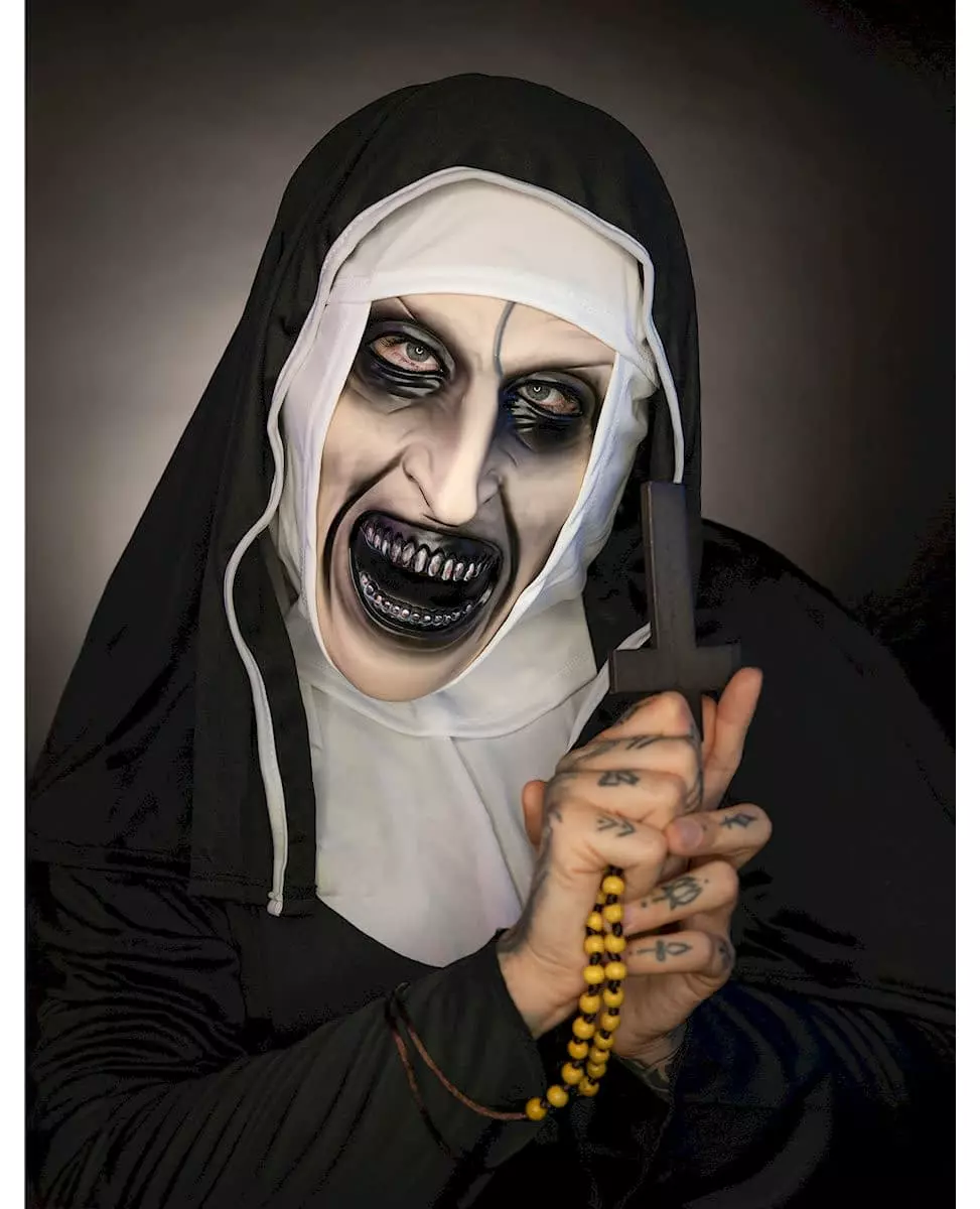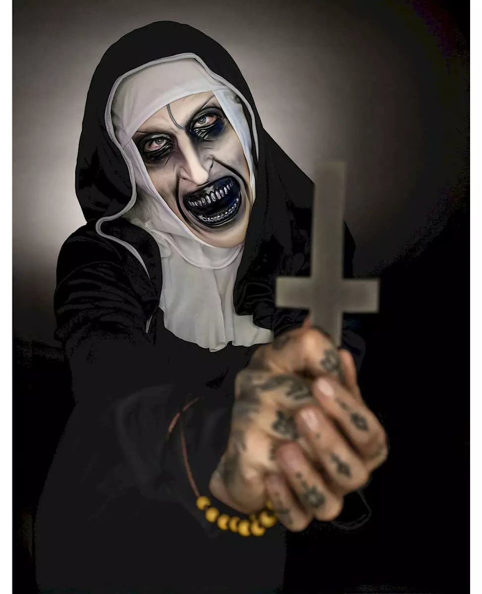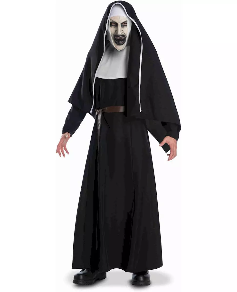 Legemliggjør nonnen til Halloween! Dette settet inkluderer et offisielt lisensiert Nonne-kostyme. Dette kostymet består av en kjole, et belte og en maske med et hodeplagg sydd på. Den svarte kjolen er svart og har lange ermer. Et brunt belte vil bli festet over kjolen for å markere midjen. Masken er laget av PVC og representerer det skumle ansiktet til Nonne. Den er åpen i øyehøyde for bedre synlighet. Et svart stoffhodeplagg er sydd på masken for å gi kostymet enda mer realisme. Dette kostymet vil være perfekt for å skremme dine kjære på Halloween-festen! Inkludert tilbehør: Kjole Belte Maske med hodeplagg