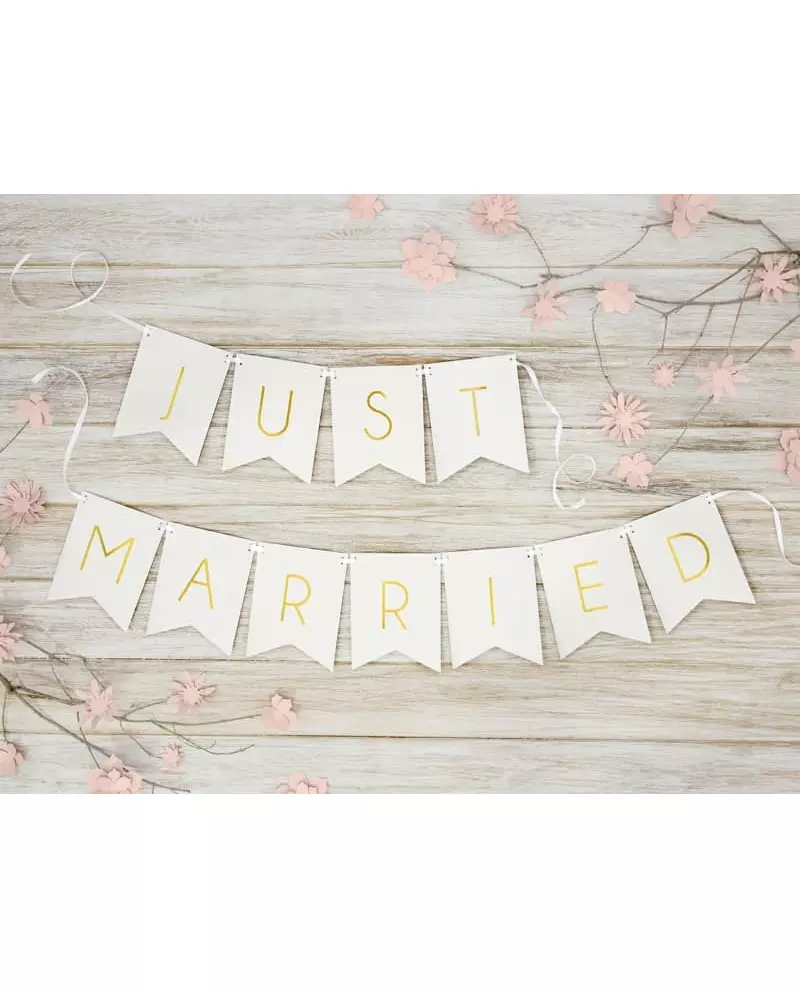 Nygifte hvit og gullfarget pappgirlander 15 x 155 cm