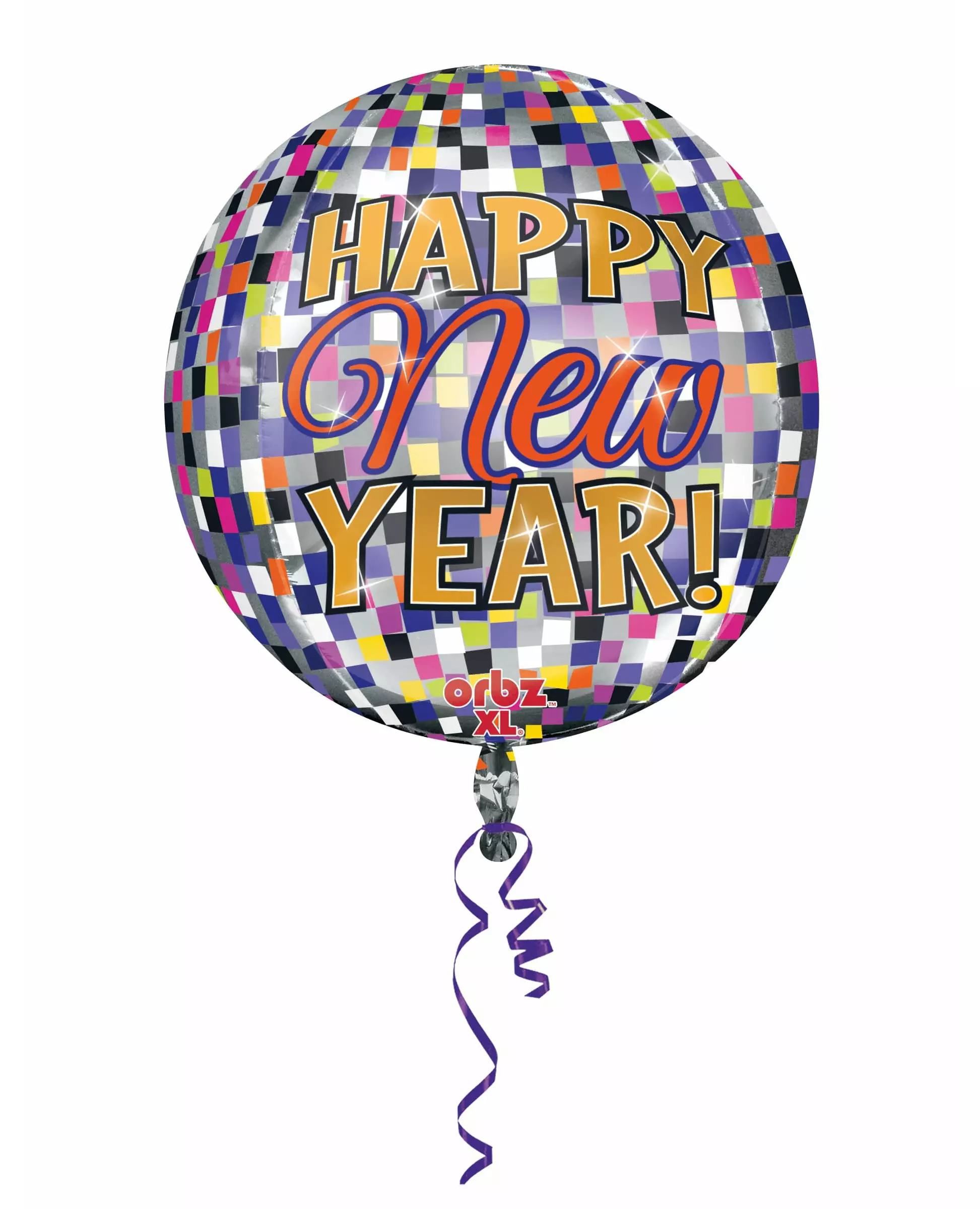 Feir det nye året i farger! Denne runde aluminiumsballongen måler omtrent 38 cm i diameter. Den er trykt med fargede prikker som imiterer en diskokule og har teksten Godt nytt år. Den kan blåses opp med luft eller helium ved hjelp av et sugerør eller en liten ballongpumpe. Denne ballongen vil være perfekt for å fullføre romdekorasjonen din til det nye året. Inkludert tilbehør: Ballongmateriale: Aluminium