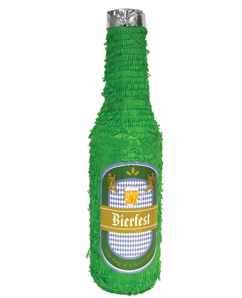 Slipp løs overraskelsen! Denne piñataen måler 76 cm. Den forestiller en ølflaske dekorert med et hvitt og blått rutemønster. Fyll den med godbiter og bank lett på den med en pinne for å slippe ut overraskelsene. Perfekt for å live opp en kveld med venner under Oktoberfesten! Inkludert tilbehør: 1 piñata