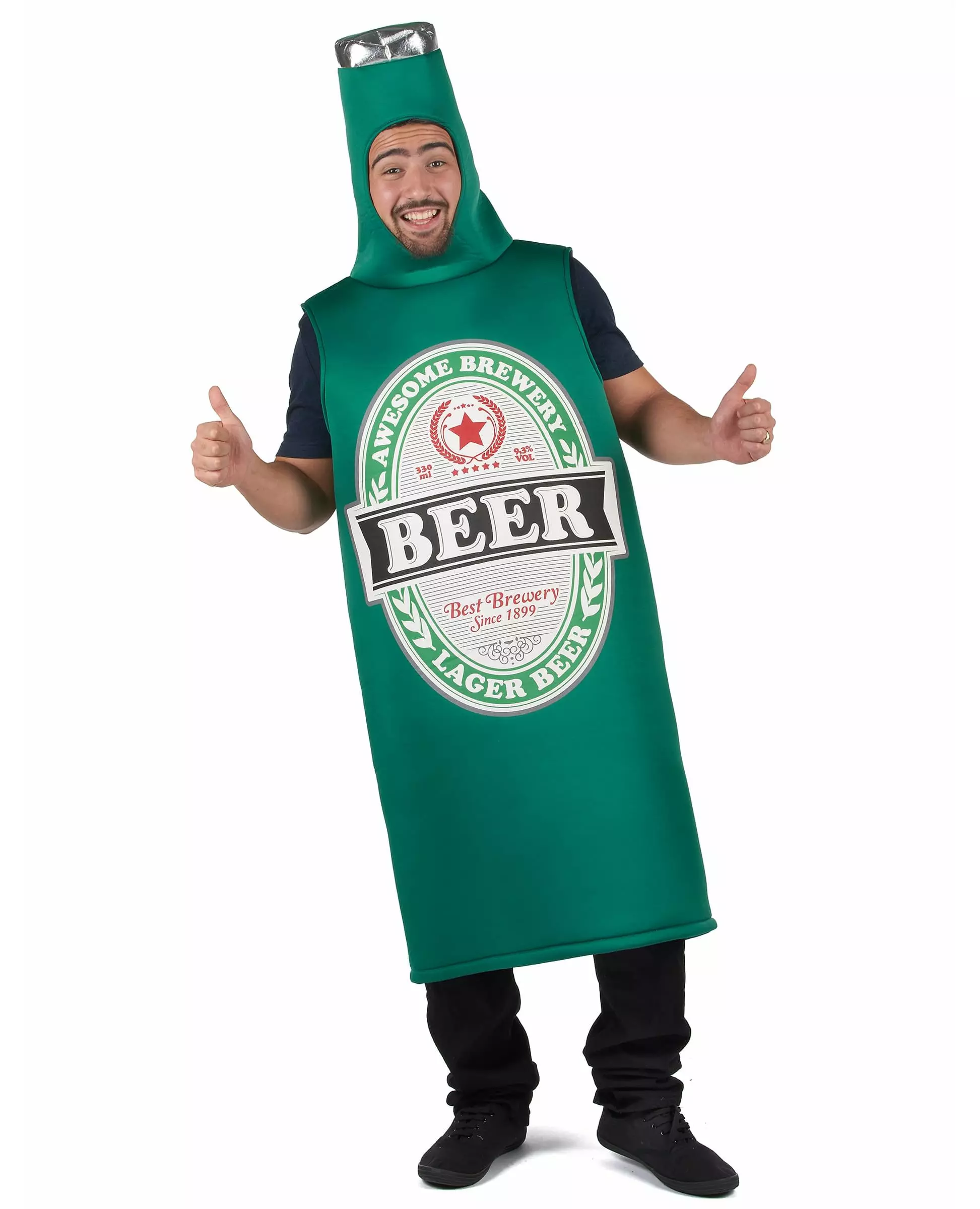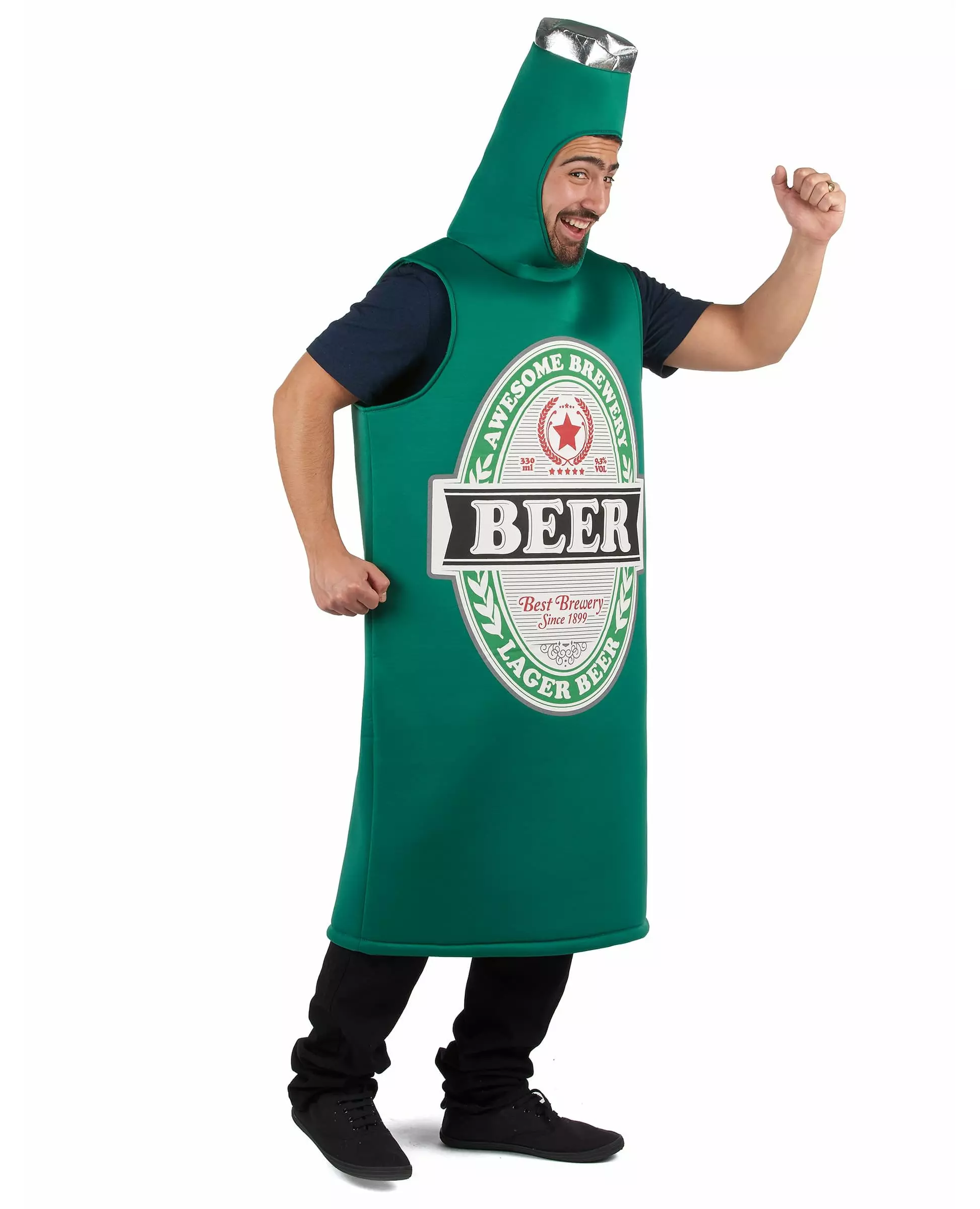Skål! Dette ølkostymet for voksne består av en jumpsuit. Jumpsuiten er grønn og formet som en ølflaske med et hull i hodet og armene, slik at du kan bevege deg fritt for å spise og drikke. Midt i jumpsuiten finner du en stor øletikett, lik den man vanligvis finner på klassiske ølflasker. Dette ølkostymet vil være perfekt for en kostymefest med komedietema, til et utdrikningslag eller for å få vennene dine til å le på nyttårsaften, for eksempel! Inkludert tilbehør: Jumpsuit Materiale: Skum Pleie: Håndvask