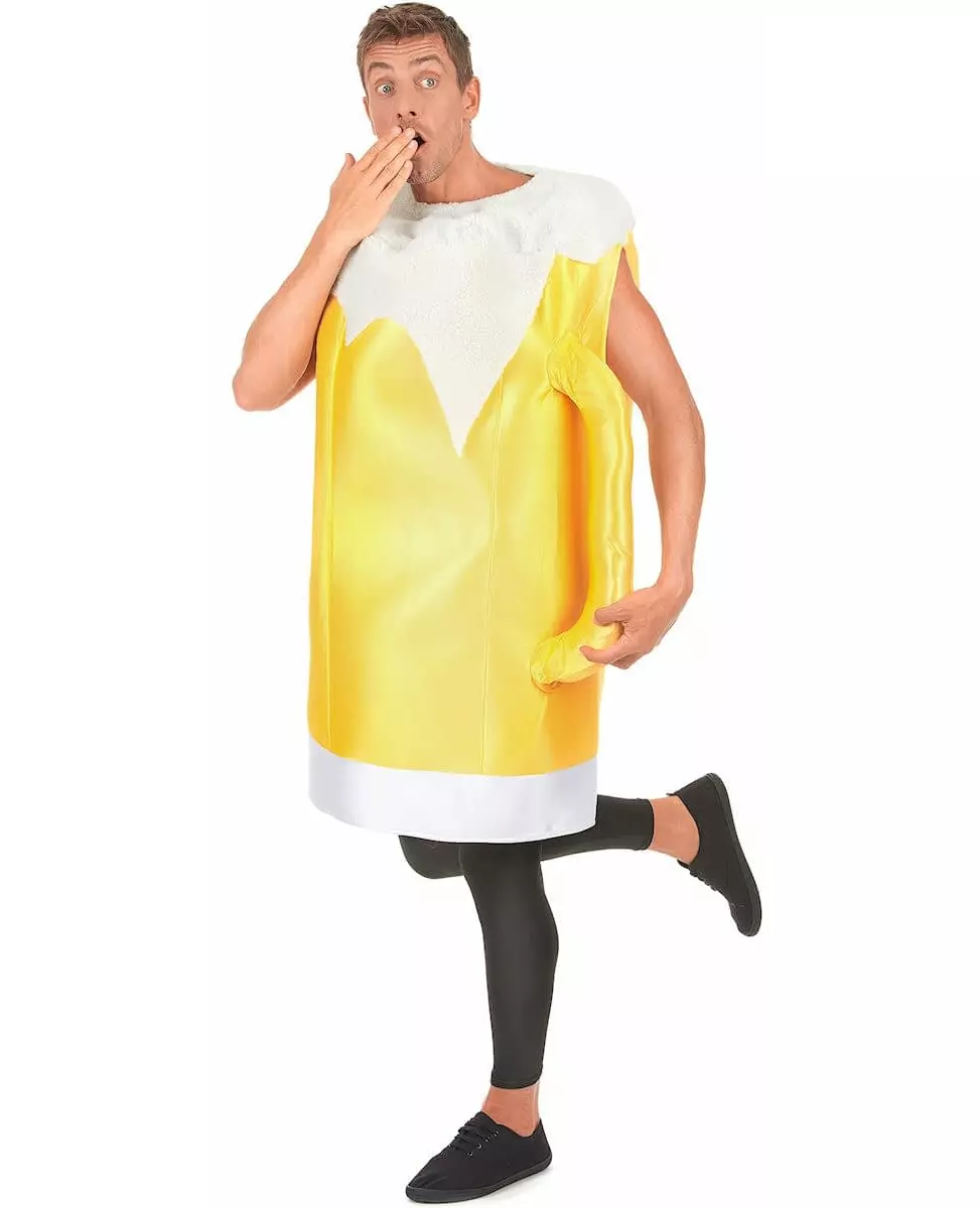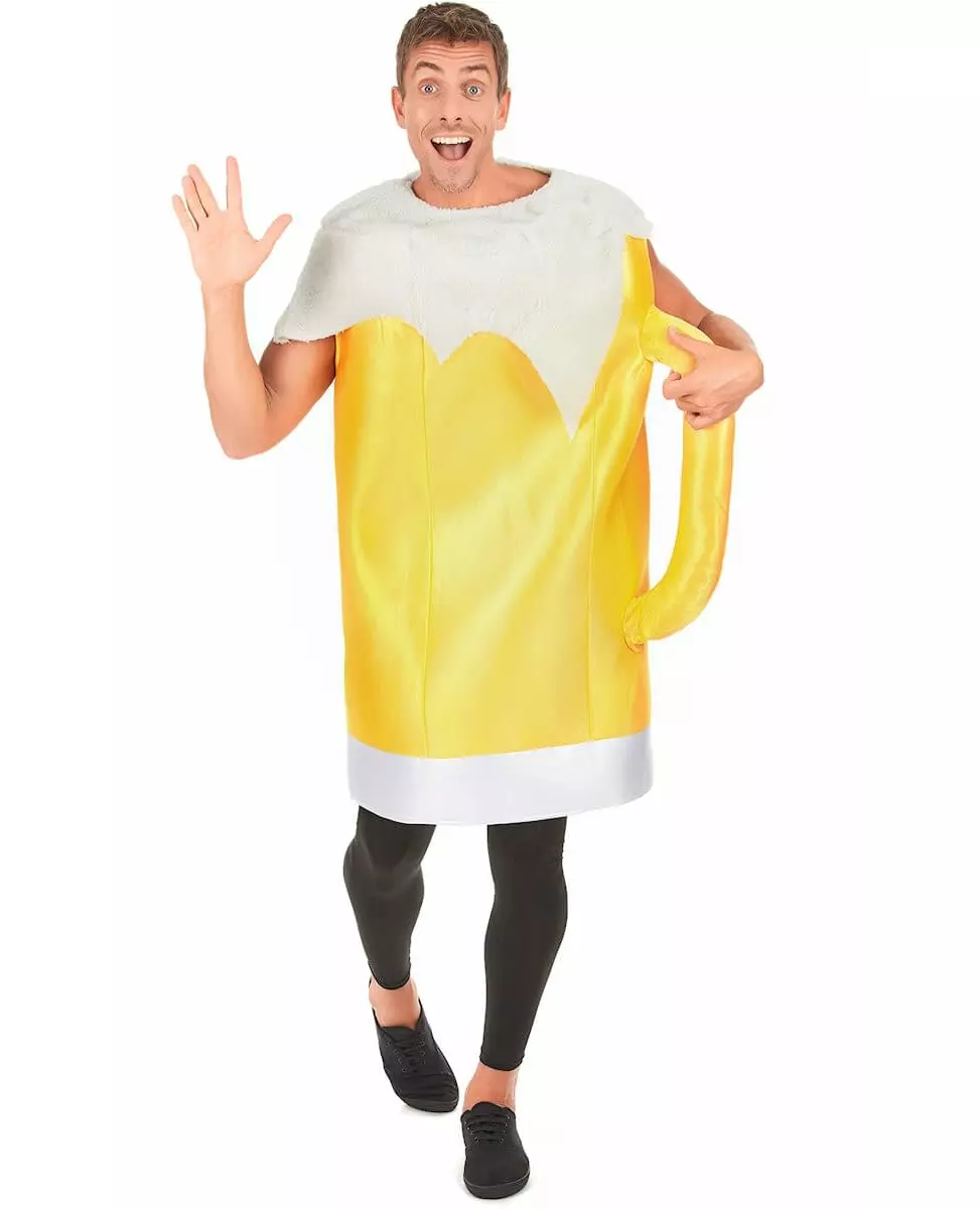 Assorterte farger! Veldig morsomt ølkruskostyme for voksne. Dette gule og hvite kostymet inkluderer en myk skumtunika som dekker overkroppen og forestiller et bayersk ølkrus med et håndtak på siden og skum som renner over på toppen. Morsomt kostyme leveres i beskyttende emballasje. Ideelt for en temakveld med venner. Inkludert tilbehør: Tunika Materiale: 100 % polyester Pleie: Håndvask