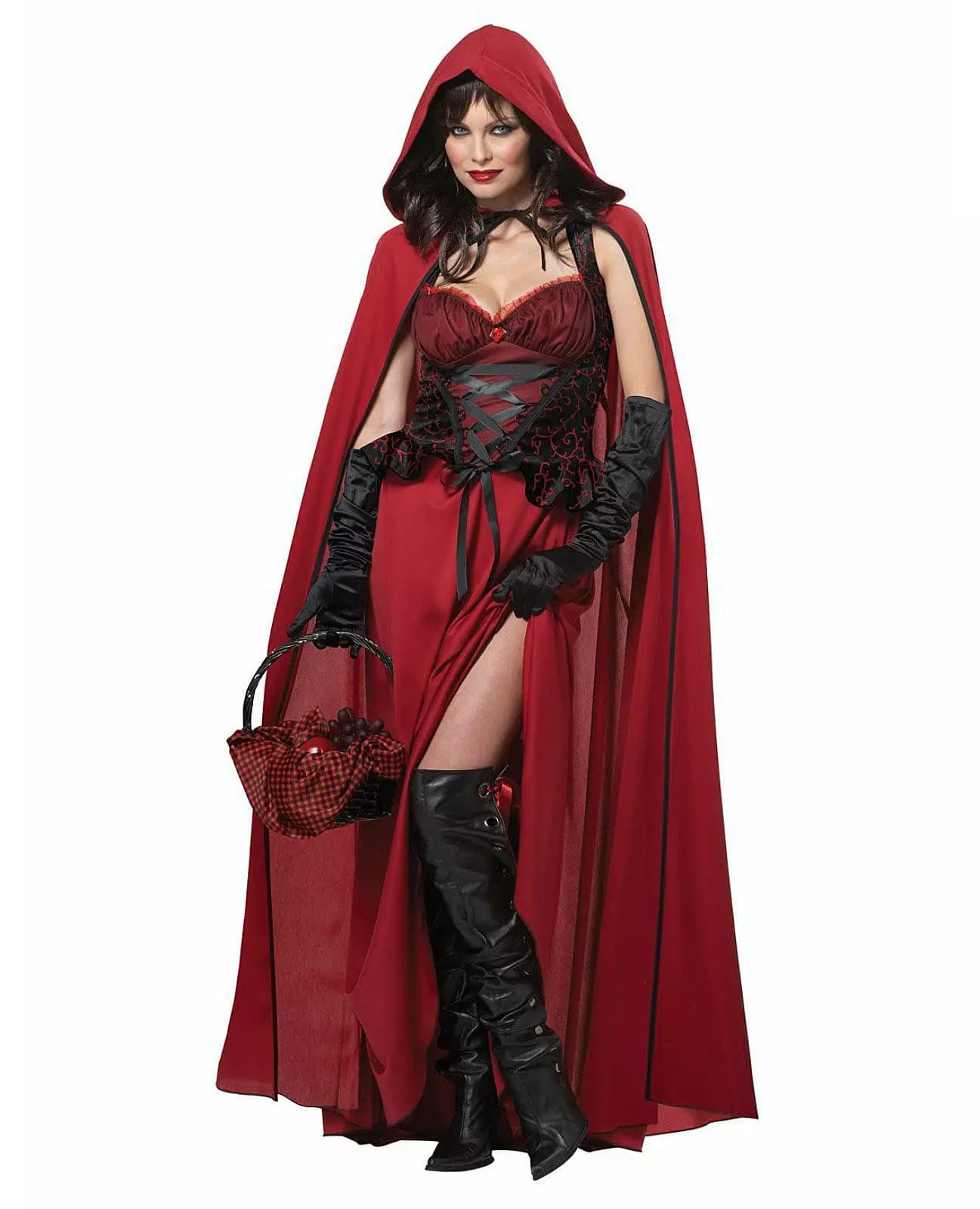 Denne kommer til å spise den store stygge ulven! Dette onde Rødhette-kostymet for kvinner består av en kjole, en kappe med hette og et lommetørkle (kurv og støvler er ikke inkludert). Den lange kjolen er rød og svart. Den har svart snøring på bysten for en sexy korsetteffekt. Denne kjolen er ledsaget av en lang rød kappe med hette og et rutete lommetørkle. Dette onde Rødhette-kostymet er perfekt til Halloween eller en fest med skrekktema!. Inkludert tilbehør: Dress, kappe, lommetørkle Materiale: 100 % polyester Vedlikehold: Håndvask