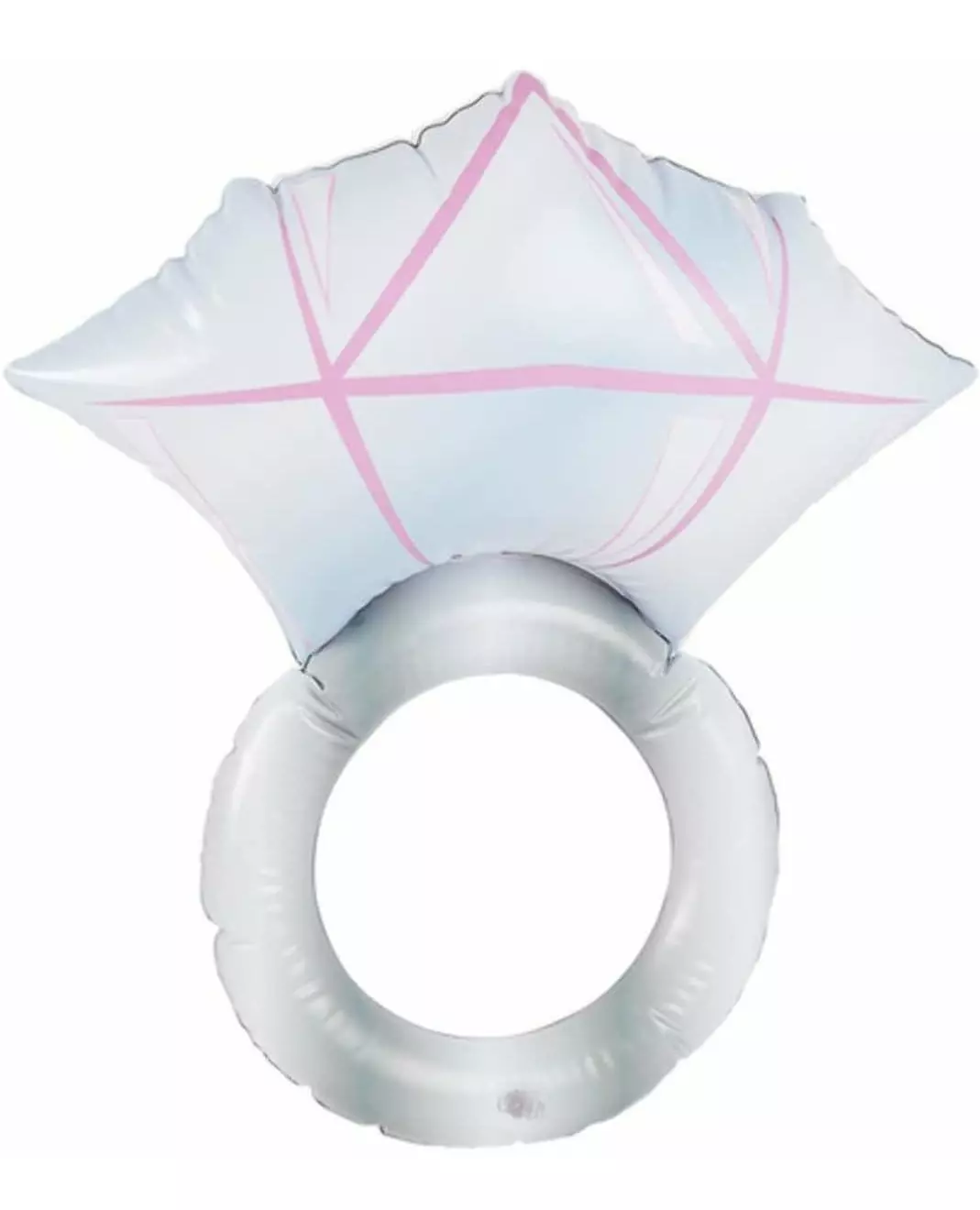 En stor forespørsel! Denne dekorasjonen forestiller en gigantisk oppblåsbar diamantring. Den måler omtrent 50 cm. Du kan enkelt blåse den opp med luft eller et sugerør. Denne ringen vil være perfekt for å fullføre en interiørdekorasjon til en bursdag eller til et utdrikningslag! Inkludert tilbehør: Oppblåsbar ring Materiale: Lateks Vedlikehold: Ikke vask