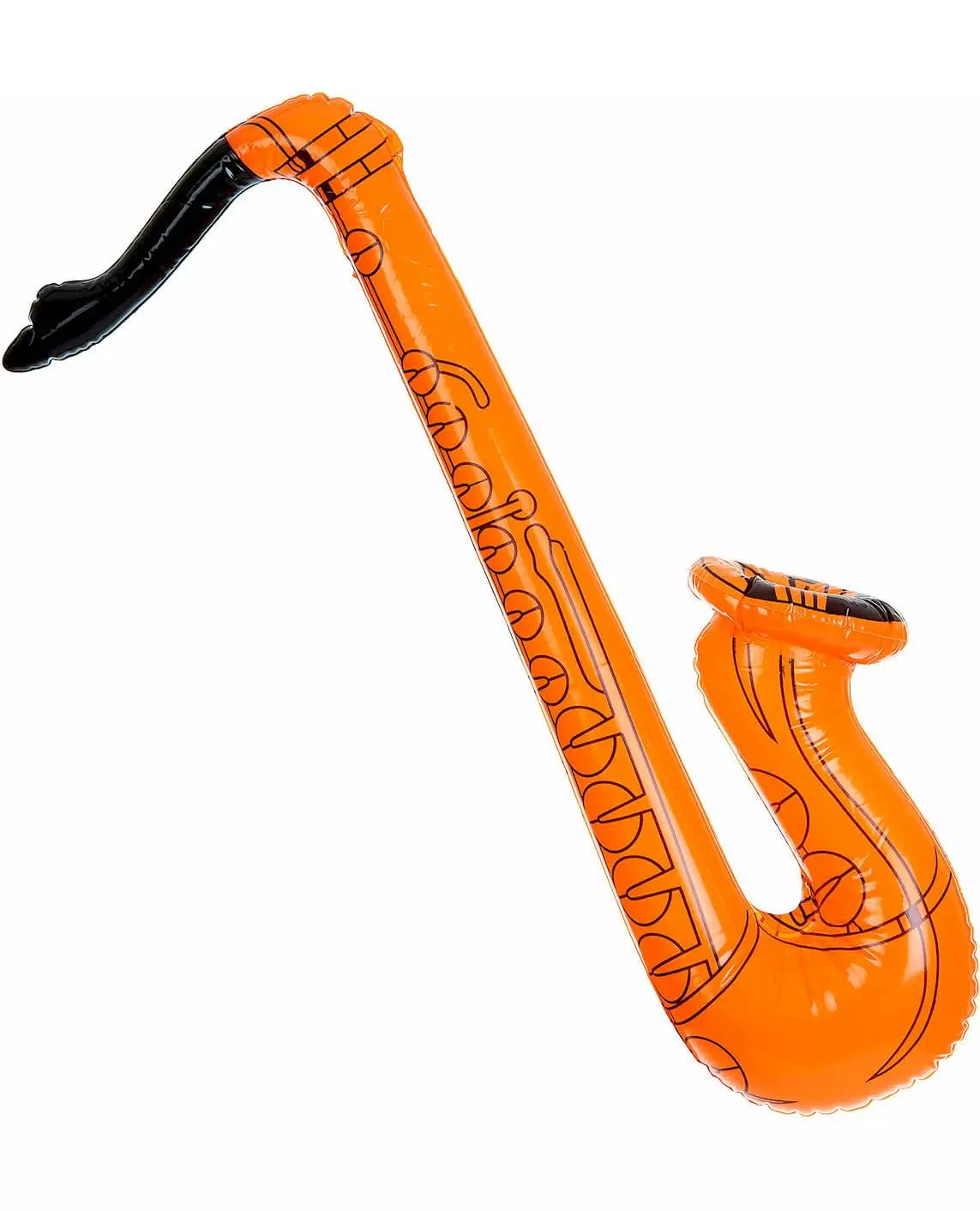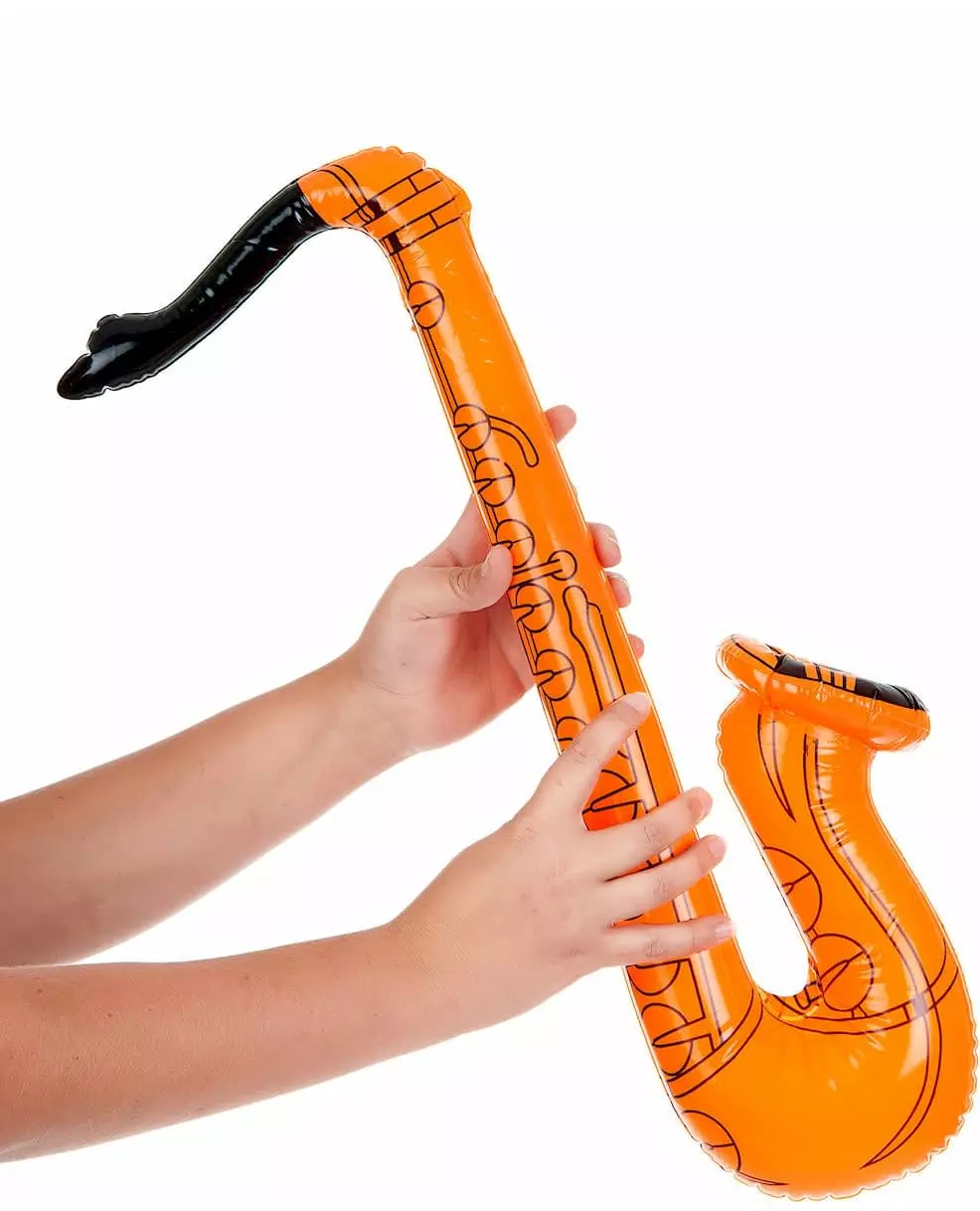 Kom igjen, blås! 55 cm oppblåsbar saksofon, veldig lett. Oppblåsing med munn anbefales – oppblåsing med pumpe anbefales ikke. Ideelt tilbehør for å fullføre et musikerkostyme og sette scenen på en temafest eller et show!. Inkludert tilbehør: Oppblåsbar saksofon