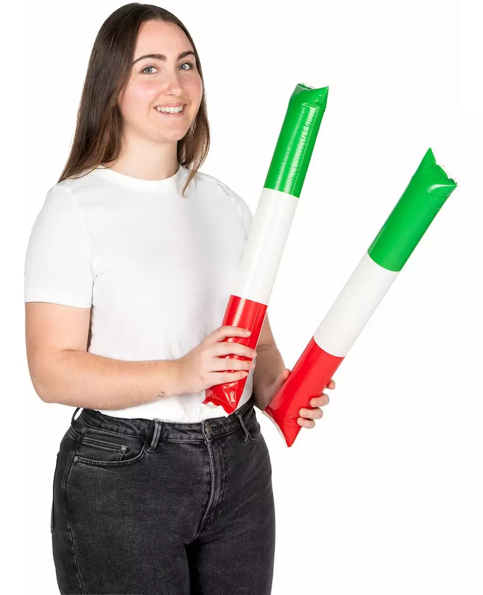 Azzura-squadraen! Disse tap-tap-pinnene er oppblåsbare og måler omtrent 60 cm. De har bilde av Italia med fargene til det italienske flagget: rød, hvit og grønn. Du trenger bare å banke dem mot hverandre for å lage lyd og oppmuntre favorittlaget ditt. Dette settet med tap-tap er et must for enhver supporter på sportsbegivenheter! Inkludert tilbehør: 1 Tap-Tap Materiale: Plast