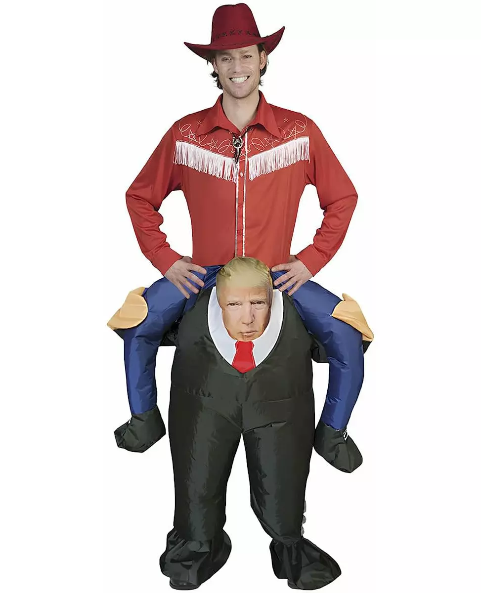 En president under press! Dette oppblåsbare amerikanske presidentkostymet er et originalt og hysterisk morsomt antrekk som vil gi illusjonen av at du blir båret av et berømt statsoverhode! Settet består av et svart oppblåsbart kostyme med jakke og rødt slips, som simulerer en president i offisielt antrekk, og blå falske bein som skaper den visuelle effekten av en cowboy som sitter på skuldrene hans. Det integrerte oppblåsningssystemet holder antrekket volumrikt gjennom hele kvelden. Dette kostymet er enkelt å ta på og komfortabelt, og garanterer en umiddelbar komisk effekt! Ideelt for et karneval, en kostymefest eller et komediearrangement, og dette kostymet vil skape furore blant de rundt deg. Inkludert tilbehør: 1 kostyme 1 oppblåsingssystem Materiale: 100 % polyester Vedlikehold: Håndvask