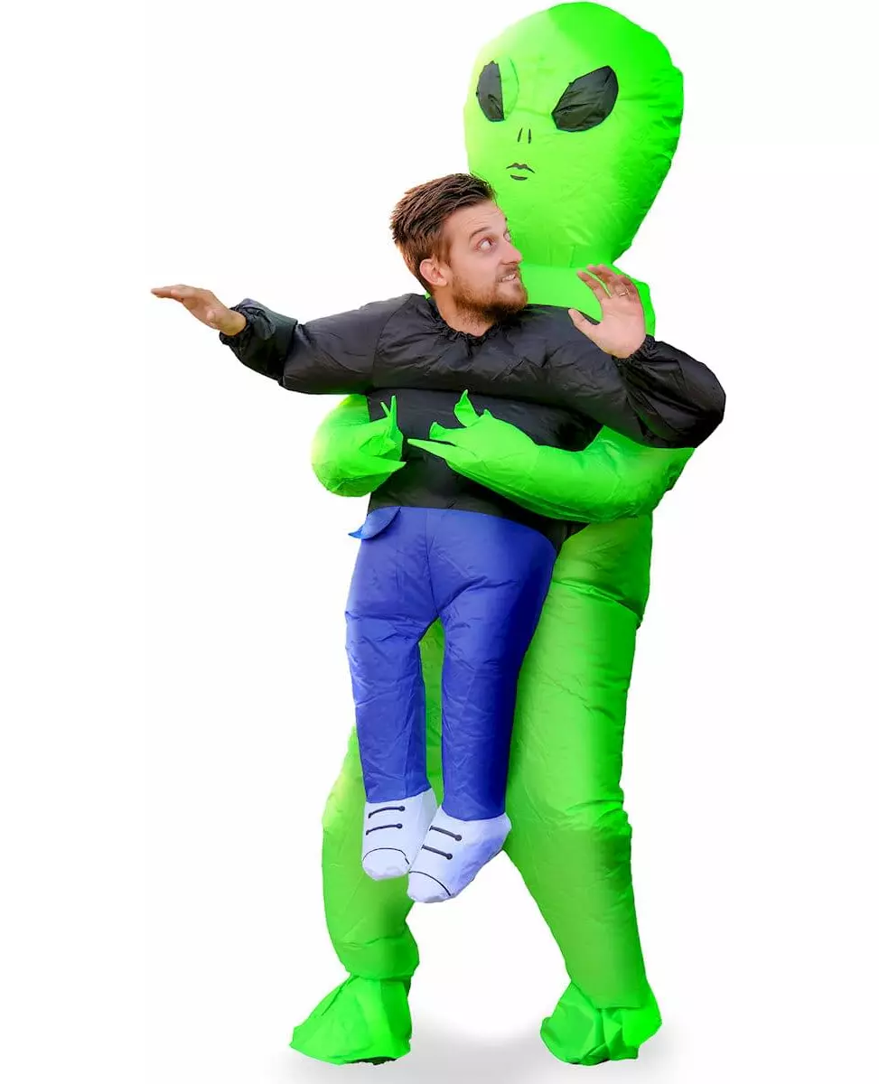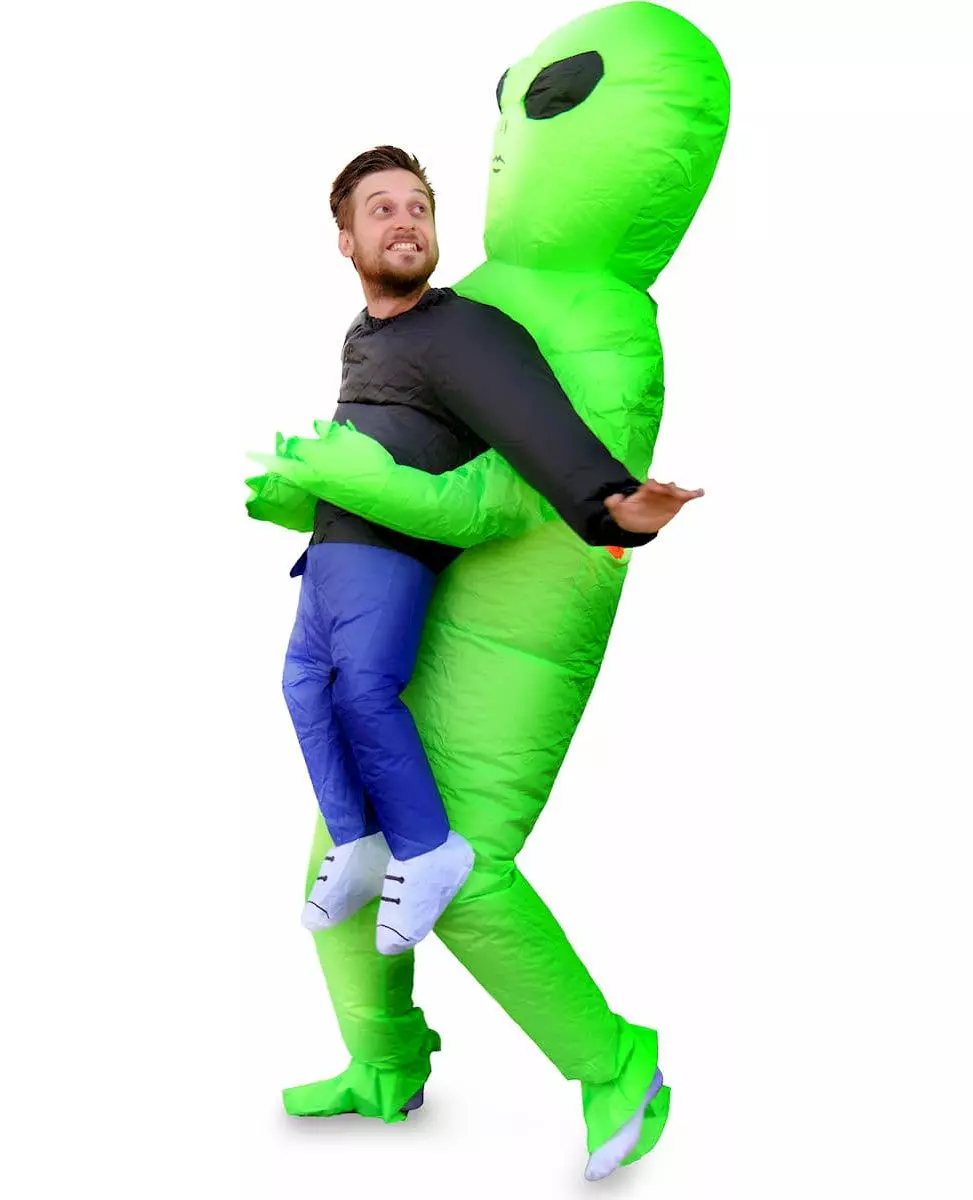 Et fantastisk møte! Dette oppblåsbare kostymet er for voksne og består av et kostyme og en oppblåser. Dette påkledde kostymet vil gi inntrykk av at du blir båret av en romvesen. Den utenomjordiske er grønn i fargen og har store, svarte øyne. Alt du trenger å gjøre er å slå på oppblåseren for at kostymet skal ta form. Ta på deg dette originale oppblåsbare kostymet for å gjøre et plask på karnevalet eller Halloween-festen din!. Inkludert tilbehør: Kostymeoppblåser Materiale: 100 % polyester Vedlikehold: Håndvask