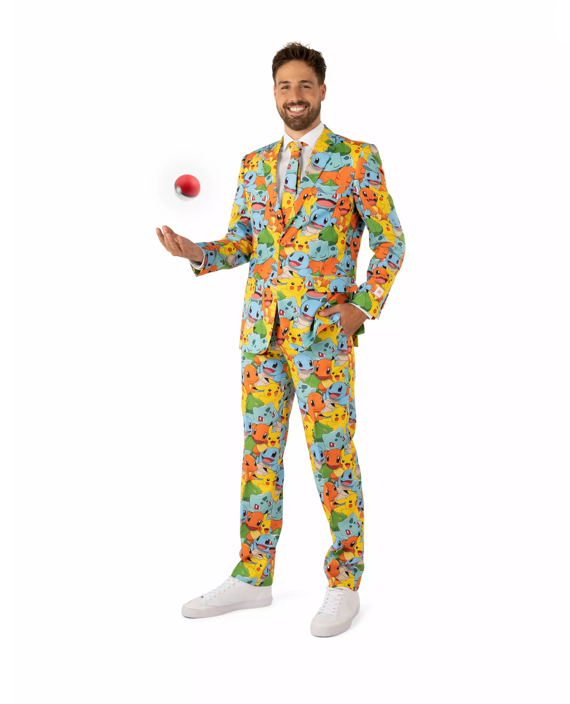 Pokémon, fang dem alle! Dette Pokémon™-kostymet er for voksne og består av en jakke, bukse og slips. Settet er offisielt lisensiert av Opposuits™ og har trykk med Pokémon™ Bulbasaur, Charmander og den berømte Pikachu. Jakken har to falske sidelommer og en tredje falsk lomme på brystet. Den lukkes med to knapper foran. Buksene er lange og har to lommer. Glidelås og knapp lar deg lukke dem enkelt. Knytingen setter prikken over i-en til dette tredelte kostymet. Bare knyt det rundt halsen. Dette fantastiske Pokémon-kostymet vil gi et snev av originalitet til tegneseriefesten din! Materiale: 100 % polyester. Inkludert tilbehør: Jakke, slips, bukse.