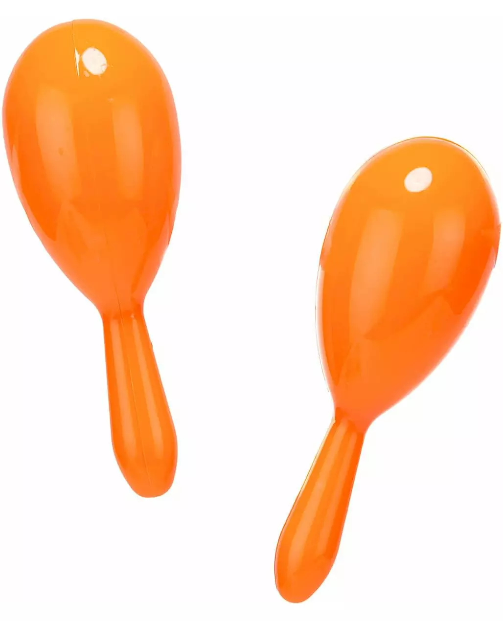 Lag litt lyd! Disse to maracaene måler 18 cm. De er oransje i fargen. Det er små baller inni som lager lyd. Disse maracaene vil være perfekte for å sette stemningen på en temafest eller et sportsarrangement. Inkludert tilbehør: 2 maracaer