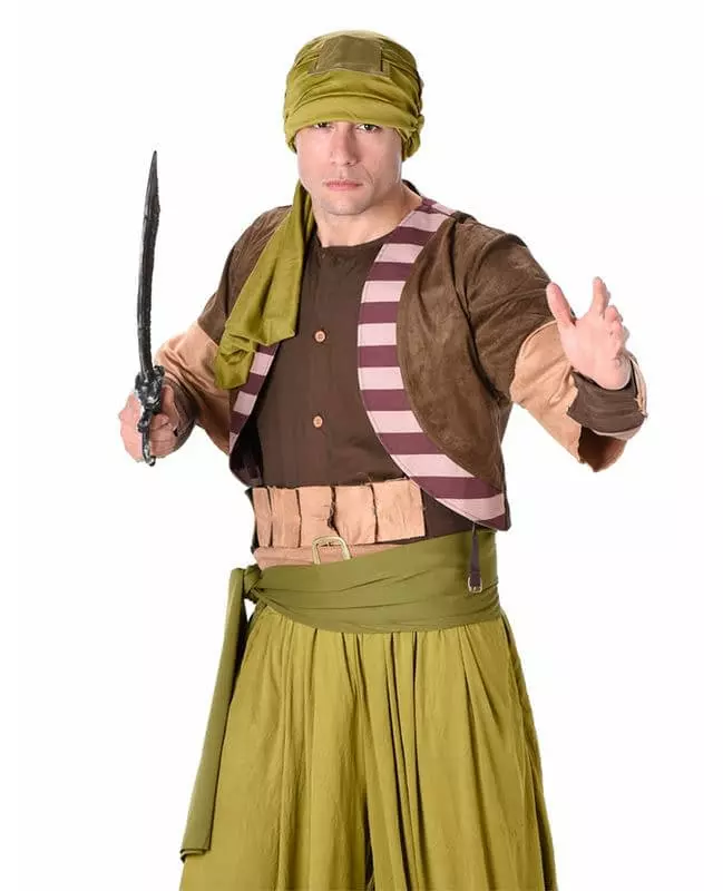 Voksenkostyme inkluderer: Turban, topp med vest, bukser, par mansjetter, belte.