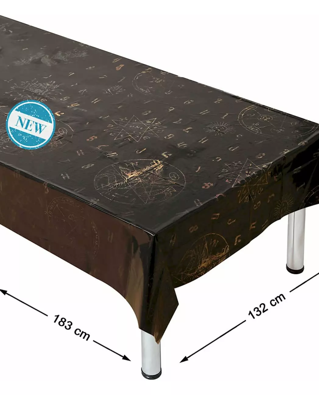 Gi innredningen din et mystisk preg med Ouija-duken vår! Denne Ouija-duken på 183 x 132 cm er laget av plast. Den har gullgraveringer og inskripsjoner på en svart bakgrunn som vil gi deg frysninger. Denne Ouija-duken er perfekt for å dekorere et bord for å gjøre det mer skummelt og okkult på kveldene med venner eller under Halloween! Ingredienser: NC. Inkludert tilbehør: Duk Materiale: Plast Vedlikehold: Ikke vask.