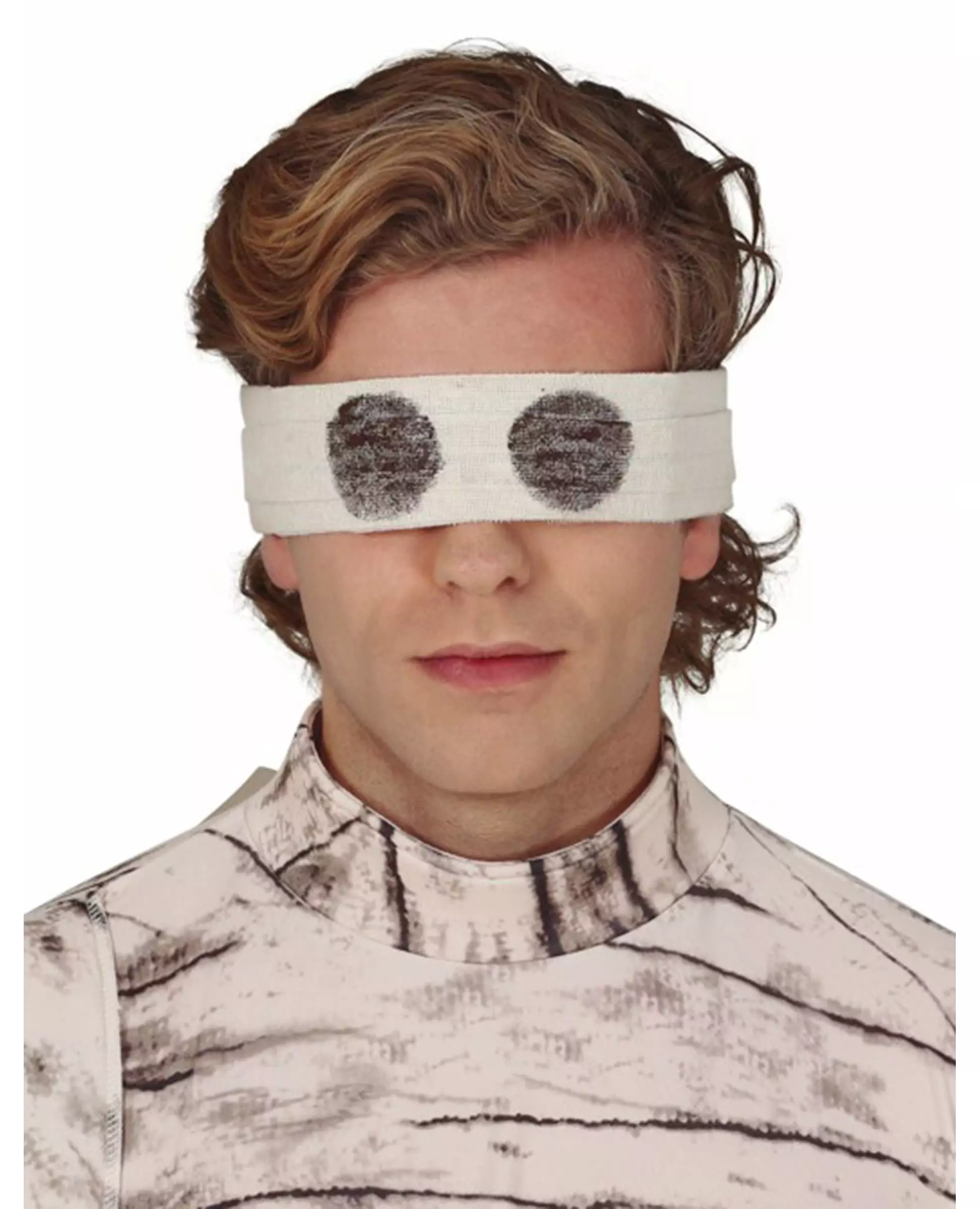 Skjul de øynene jeg ikke kan se! Denne binden for øynene er for voksne og måler 67 cm. Den gir en illusjon av en mumies øyne med sine to svarte sirkler. Disse lar deg se gjennom dem for større komfort. En flott måte å forvandle deg til en mumie til et kostymefest med denne binden for øynene! Materiale: 100 % POLYESTER. Inkludert tilbehør: Bind for øynene