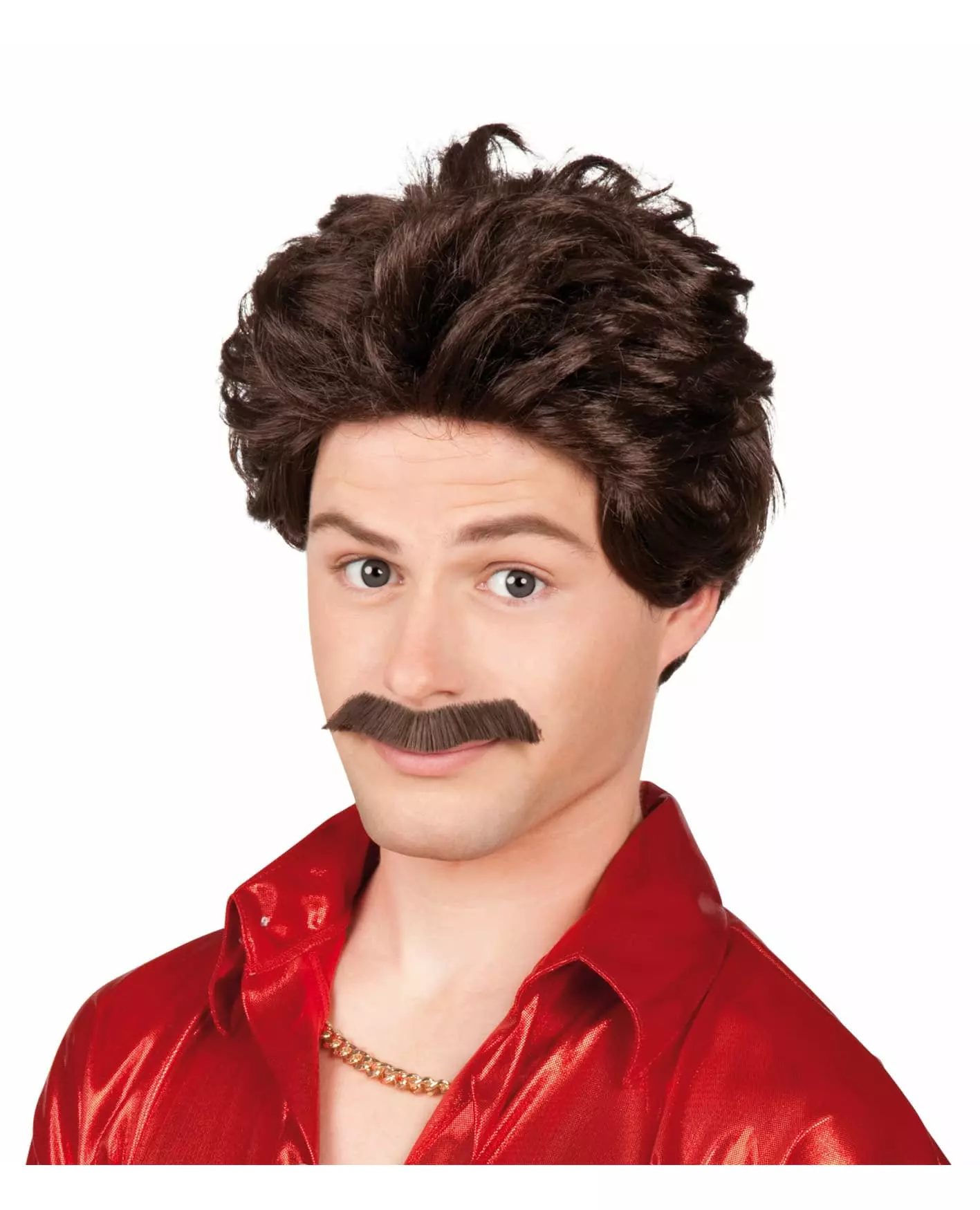 Ideell for et retro-utseende! Dette settet inneholder en bart og en parykk. Den korte parykken er brun. Den har et elastisk bånd som passer perfekt til hodeformen. Barten er festet med lim. Denne parykken er ideell for å fullføre kostymet ditt til dine "retro"-temafester. Inkludert tilbehør: Bartparykk Materiale: 100 % syntetisk
