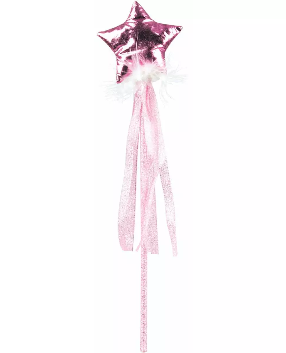 Et ideelt tilbehør til et rosa fe-kostyme. Denne fe-staven er for jenter. Denne staven har et lyserosa håndtak. På toppen er det en pen metallisk rosa stjerne. Små fjær dekorerer bunnen av stjernen, og pene lyserosa bånd faller nedover håndtaket for enda mer eventyrmoro. Denne pene staven vil perfekt pynte opp kostymet ditt til en fe- eller eventyrtemafest. Inkludert tilbehør: Tryllstav.