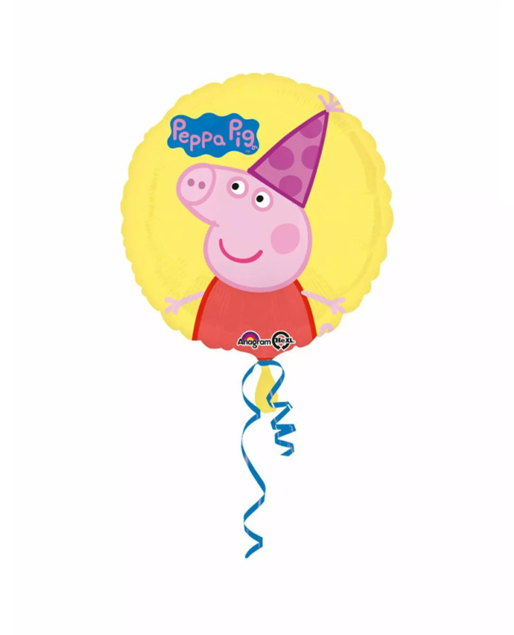 En flott Peppa Gris-bursdag! Denne offisielt lisensierte Peppa Gris-ballongen er laget av aluminium (bånd ikke inkludert). Den måler omtrent 43 cm når den er oppblåst med helium eller luft. Denne ballongen forestiller lille Peppa på begge sider med en partyhatt på en gul bakgrunn. Velg en komplett Peppa Gris-dekorasjon med denne ballongen til bursdagen til din lille fan av den berømte tegneserien!. Inkludert tilbehør: Ballongmateriale: Aluminium