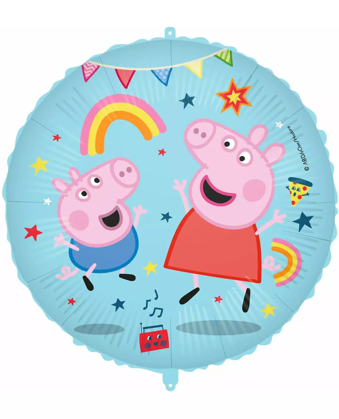 Fullfør Peppa Gris-bursdagspynten din! Denne folieballongen er offisielt lisensiert av Peppa Gris. Denne fargerike ballongen måler omtrent 46 cm i diameter. Den er trykket med flerfargede Peppa Gris-design. Den kan enkelt blåses opp med helium eller luft. Denne ballongen vil være perfekt for å fullføre interiørdekorasjonen din til en bursdagsfest eller karneval! Inkludert tilbehør: 1 ballong Materiale: Aluminium